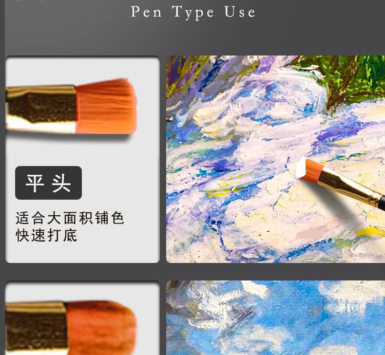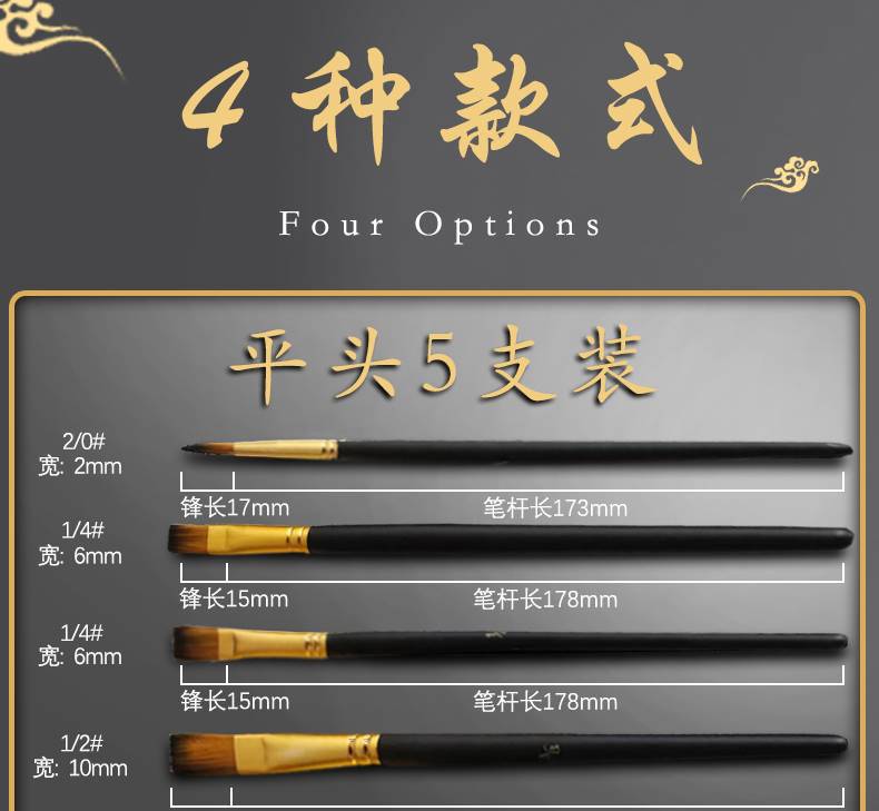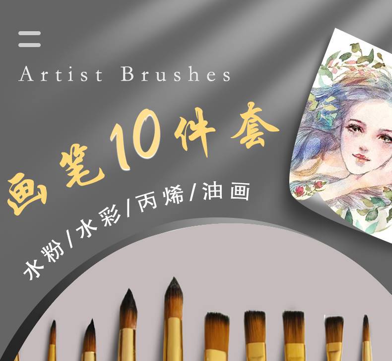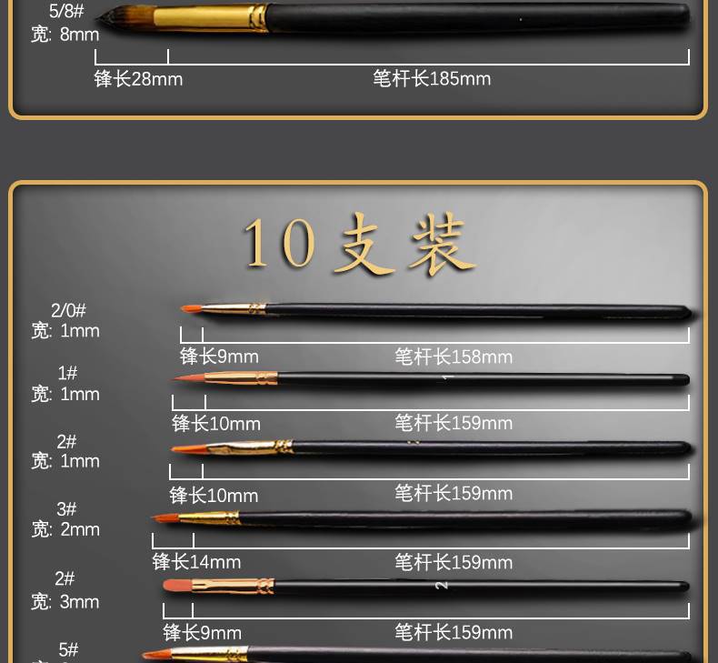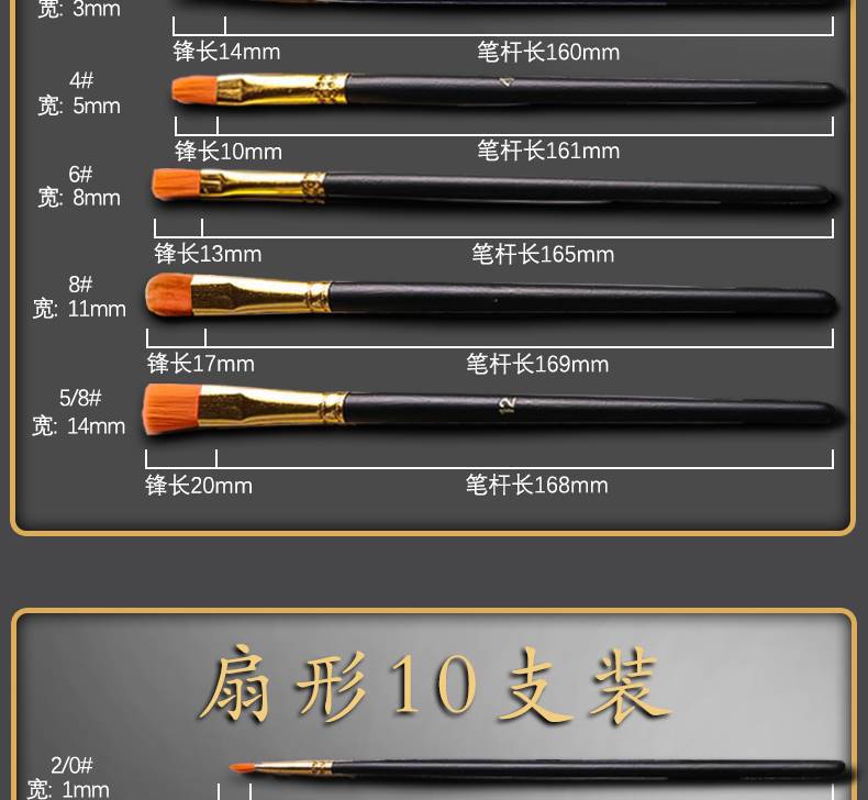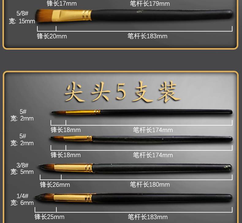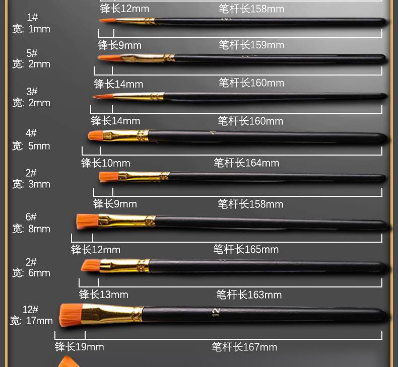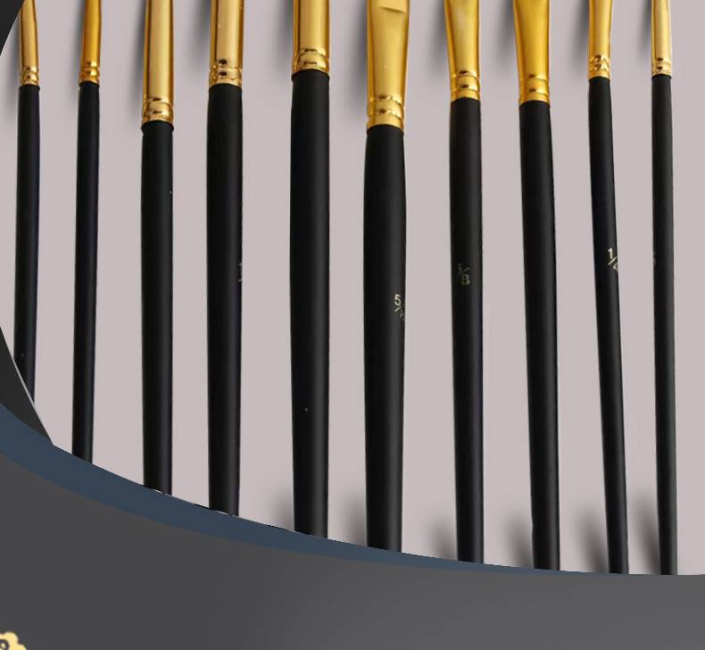 [Solid Wood 10 Pack] Flat + pointed nylon brush