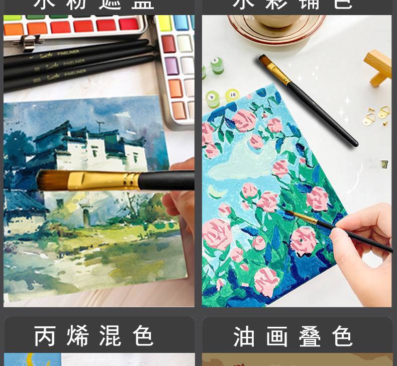 Juego de pinceles de gouache para acuarela, pinceles de nailon especiales para artistas, pintura acrílica al óleo