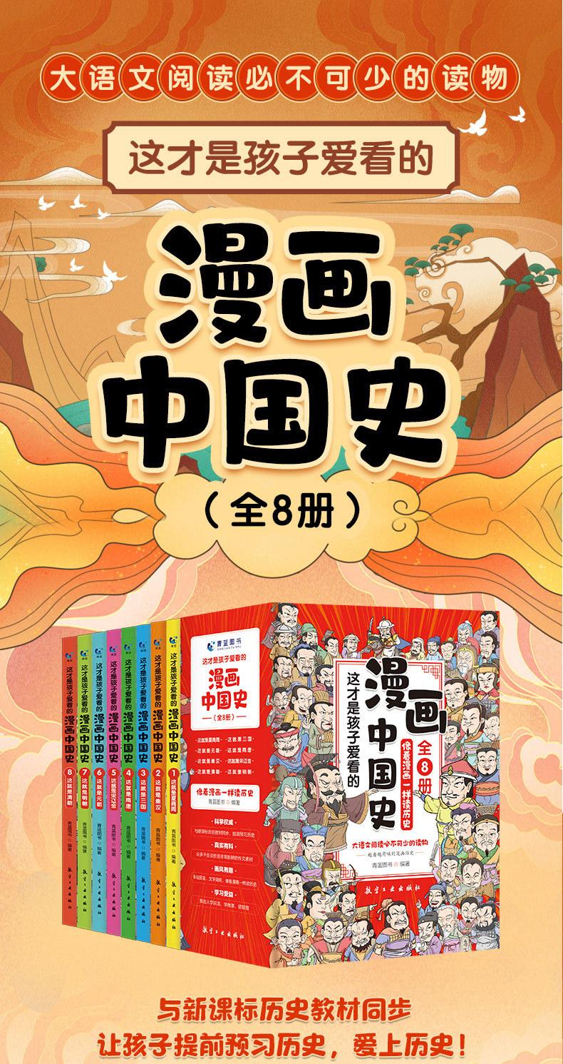 Esta es la caricatura que a los niños les gusta leer.. Los 8 libros de historia china, libros de historia moderna, lectura extracurricular para estudiantes de primaria y secundaria.