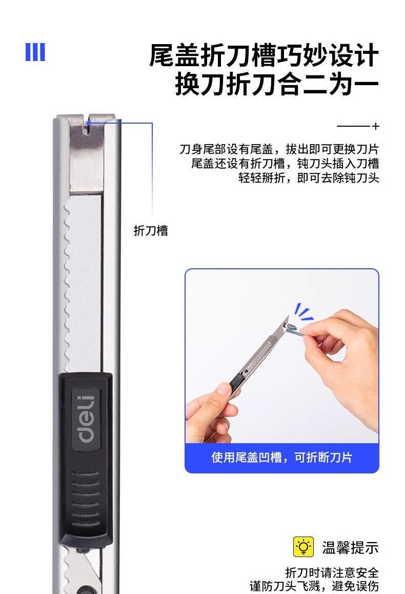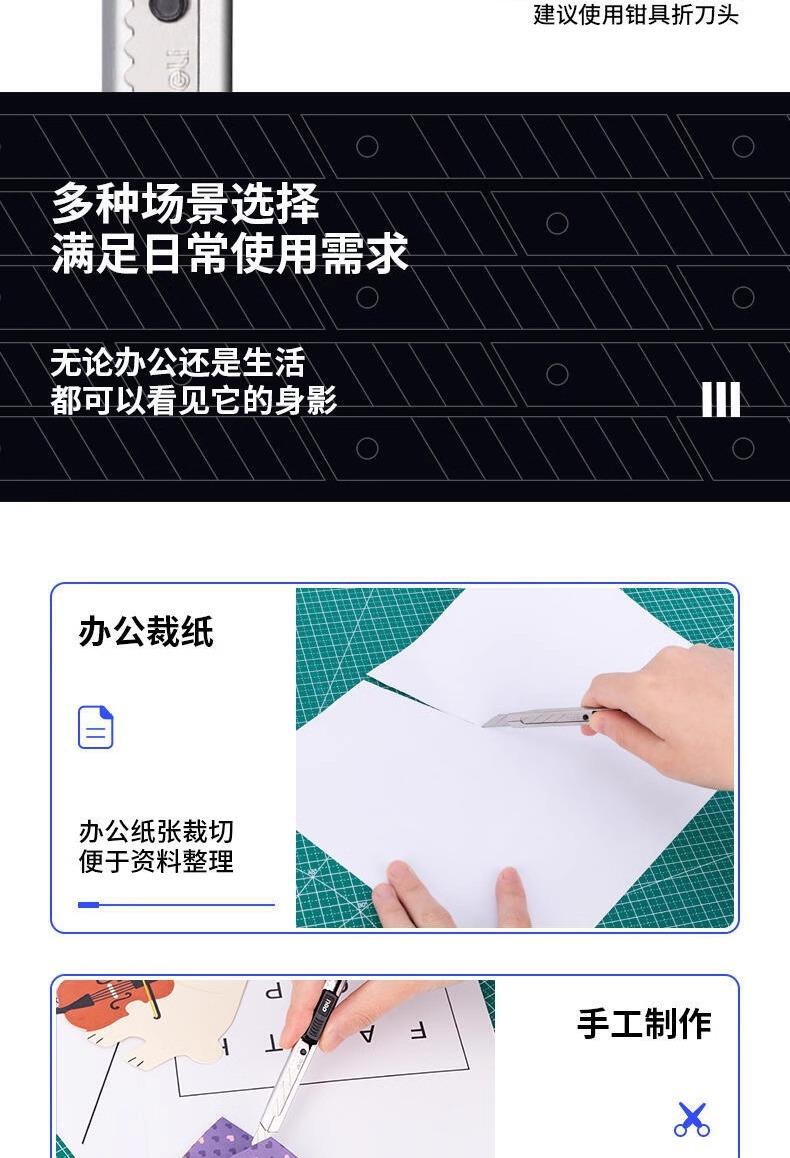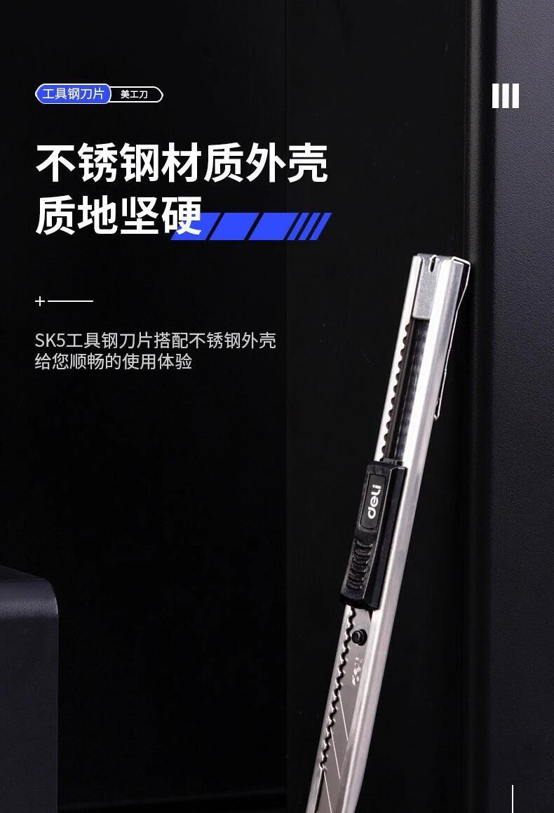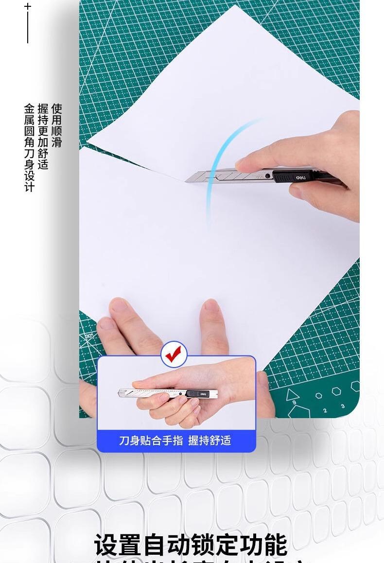 Cuchillo para cortar papel Deli Art 2034 de acero inoxidable de metal, tamaño pequeño, con bloqueo automático, desembalaje rápido a 30 grados