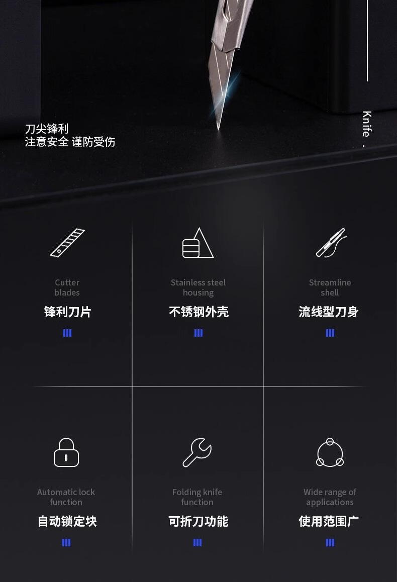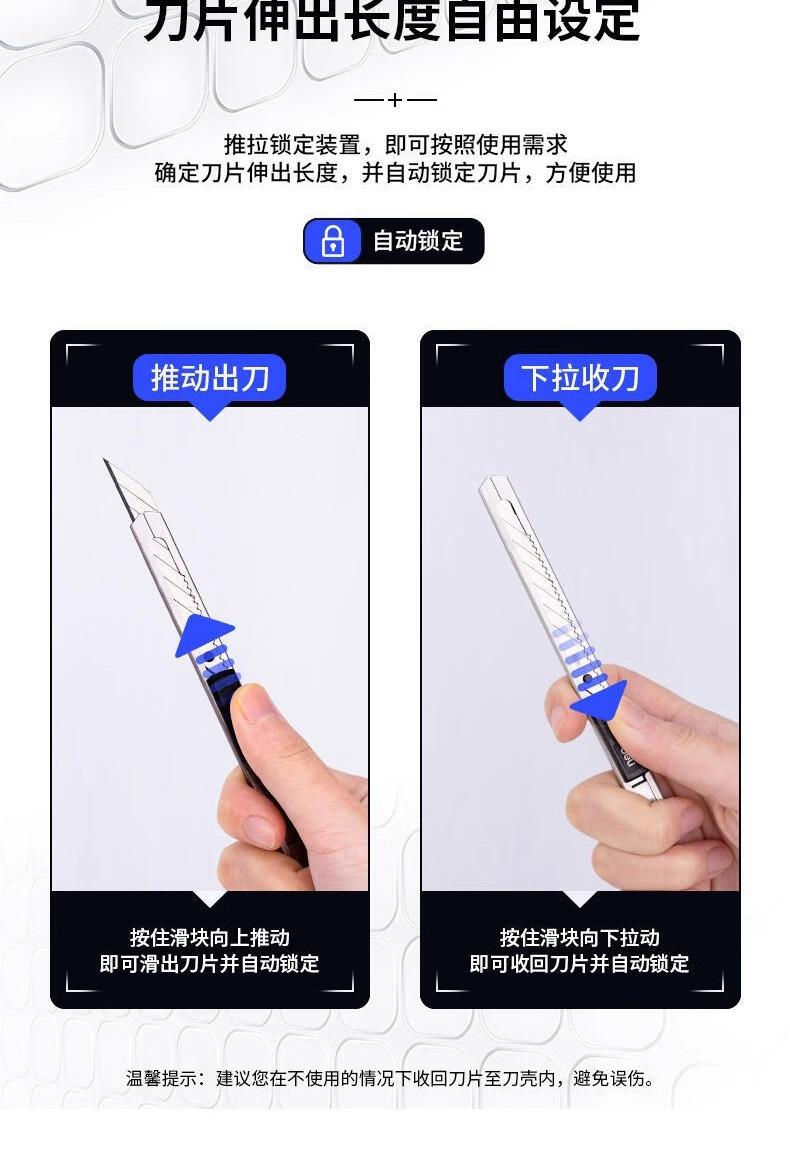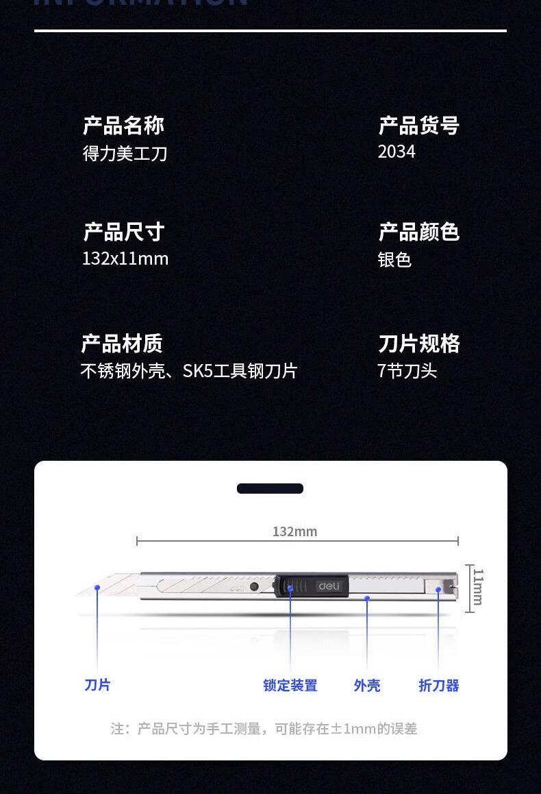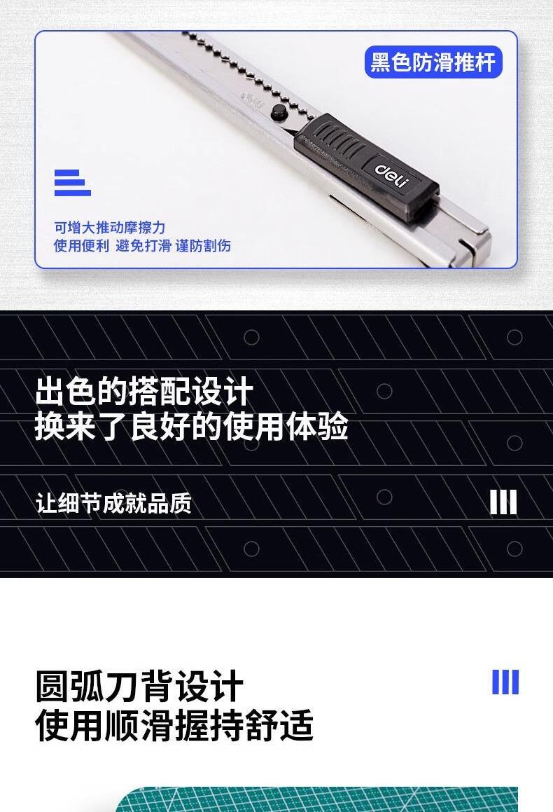 Cuchillo para cortar papel Deli Art 2034 de acero inoxidable de metal, tamaño pequeño, con bloqueo automático, desembalaje rápido a 30 grados