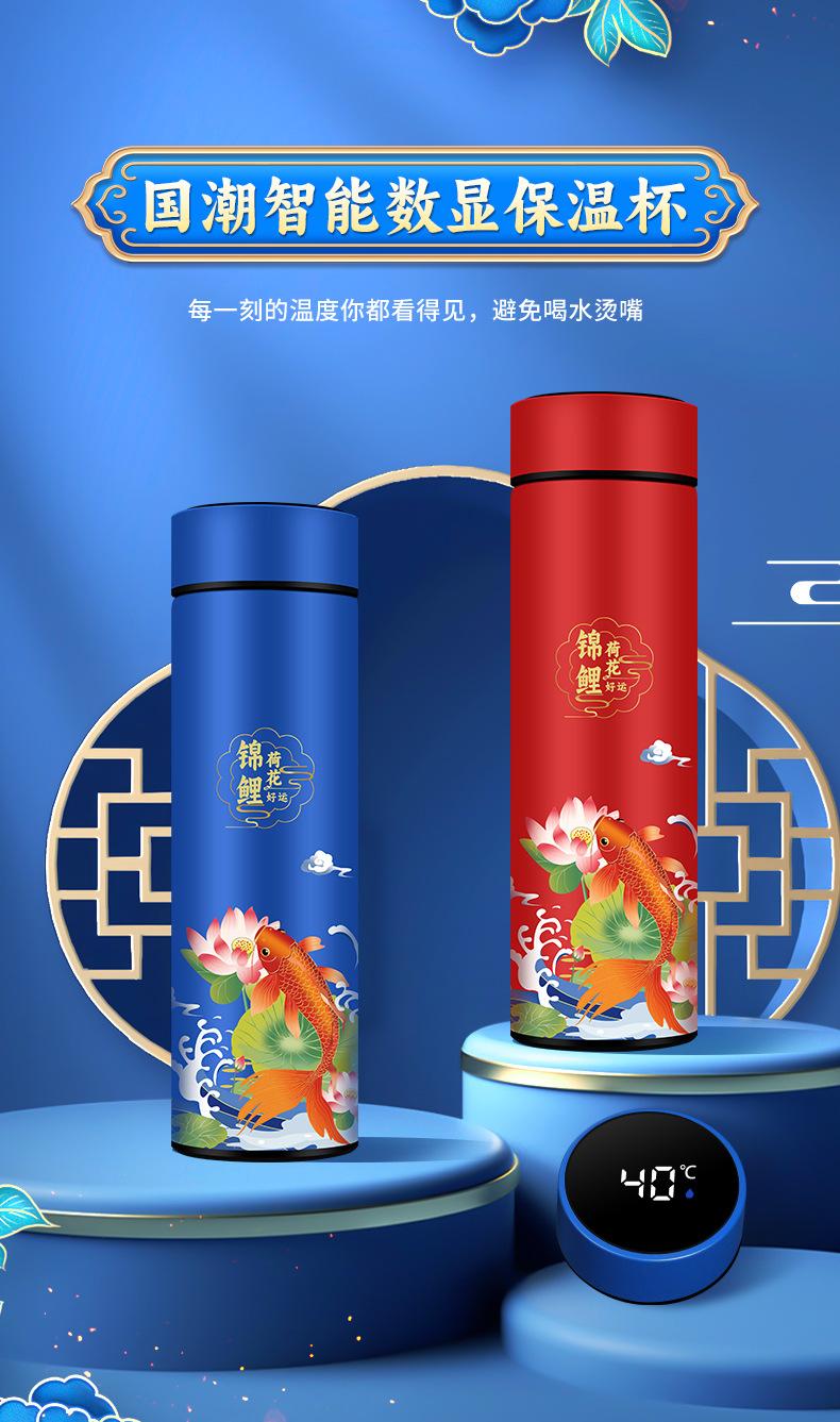 Three-piece set [temperature display thermos cup + notepad + business pen] blue, Three-piece set [temperature ...