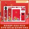Seven-piece set [temperature display thermos cup + faucet pen + notepad + u disk + mobile power supply + speaker + umbrella] red