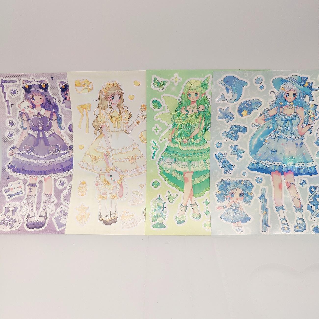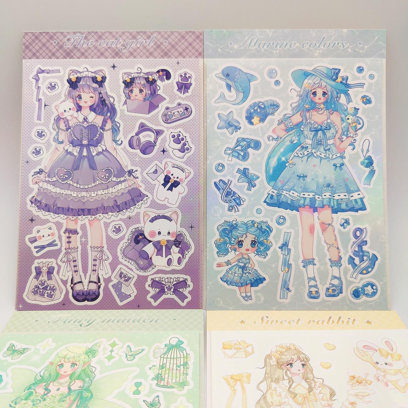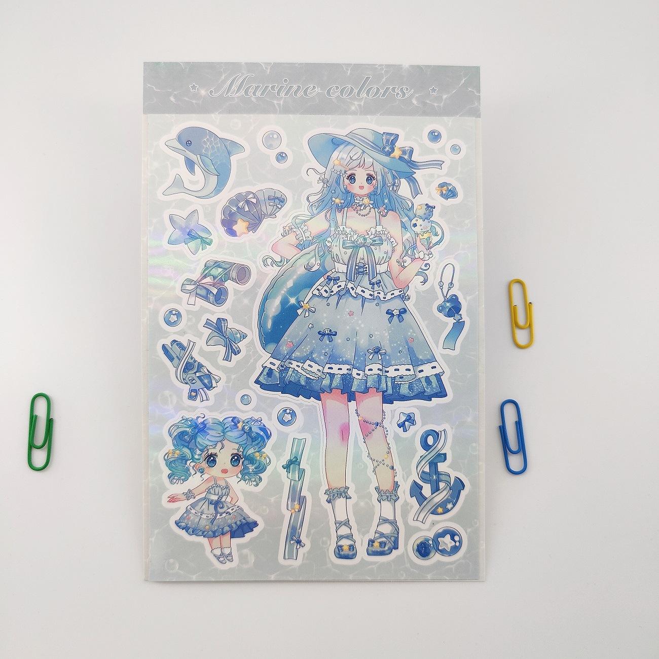 Pegatinas originales coreanas con diseño de chica de dibujos animados, estilo flash, bricolaje, caja láser, para teléfono móvil, decoración de tarjetas adhesivas, material adhesivo