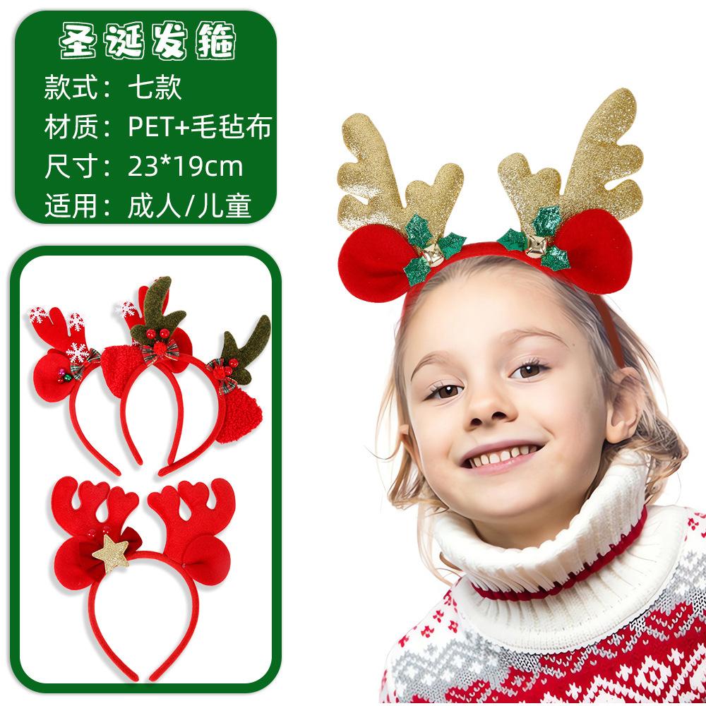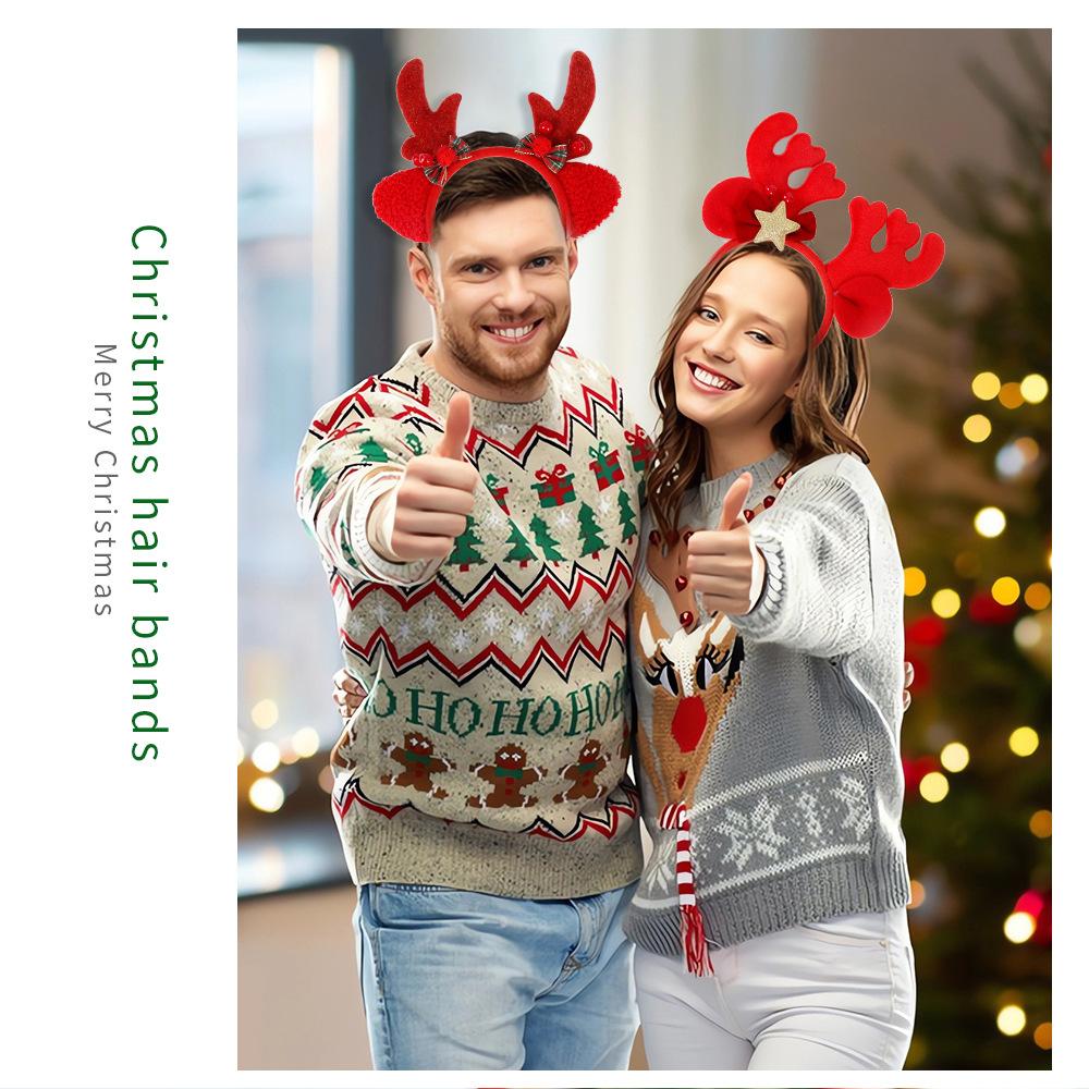 Diadema de cornamenta navideña nueva transfronteriza fieltro horquilla para adulto accesorios para el cabello navideños niños lindo tocado de alce