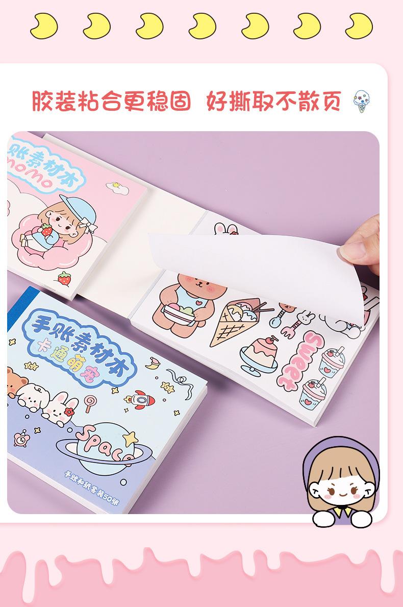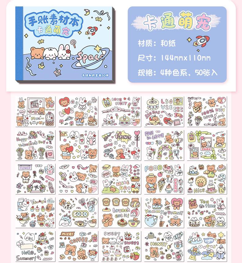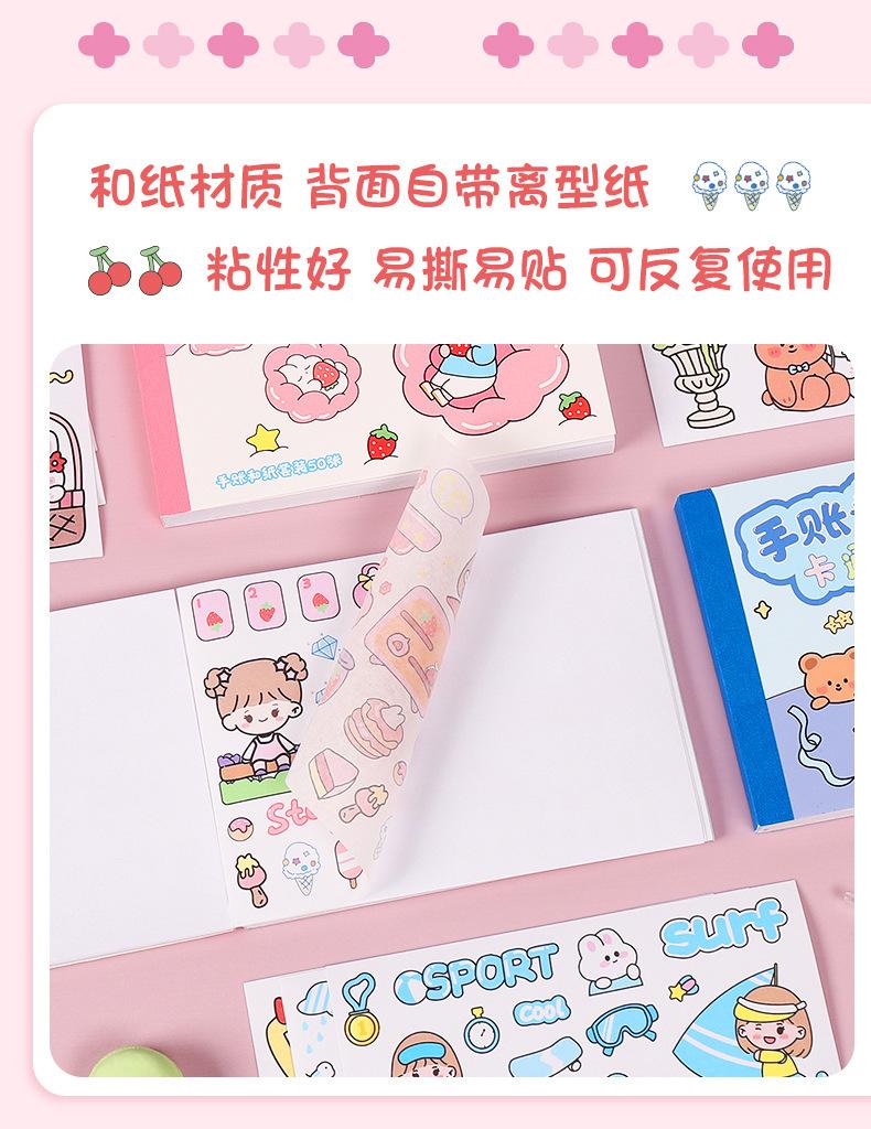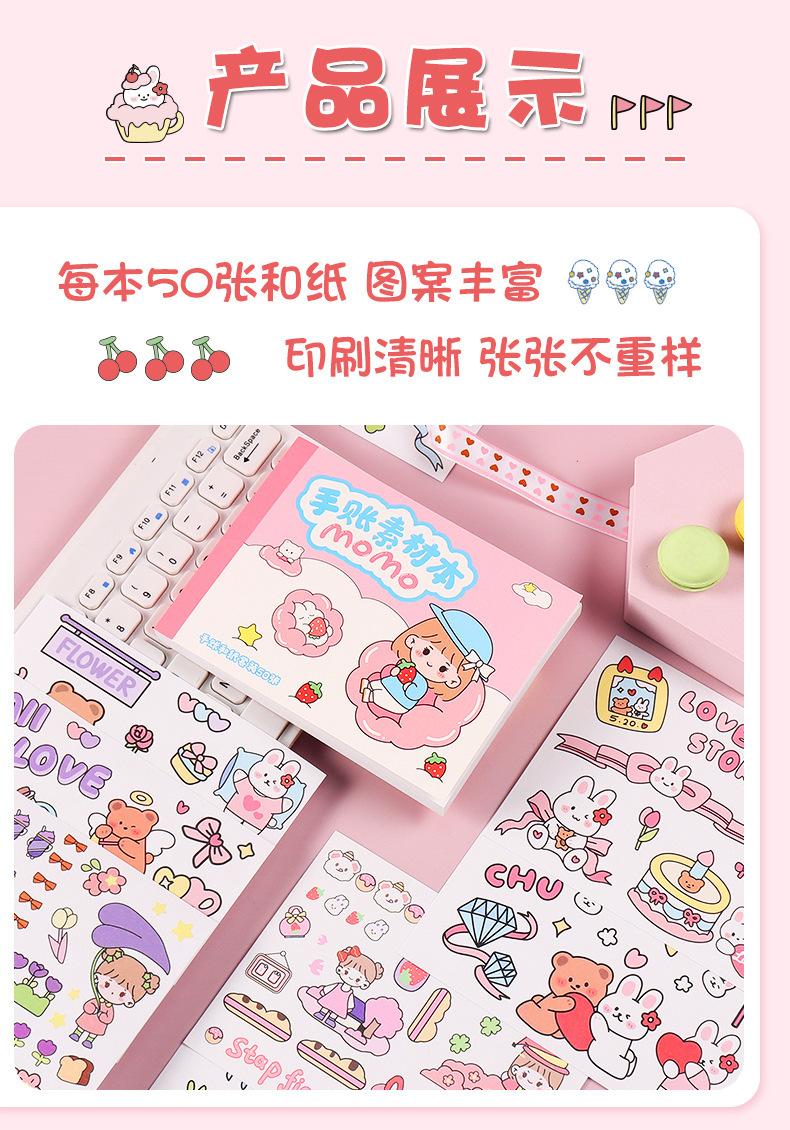 Libro de material para cuaderno Tamaño: 14.5*11cm Cubierta: Cartulina blanca de 350g laminada Stickers: 50 hojas de papel japonés Embalaje: Envoltura retráctil individual