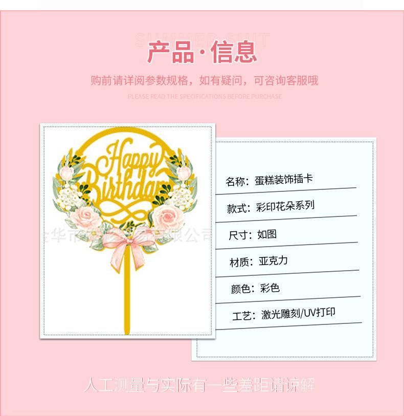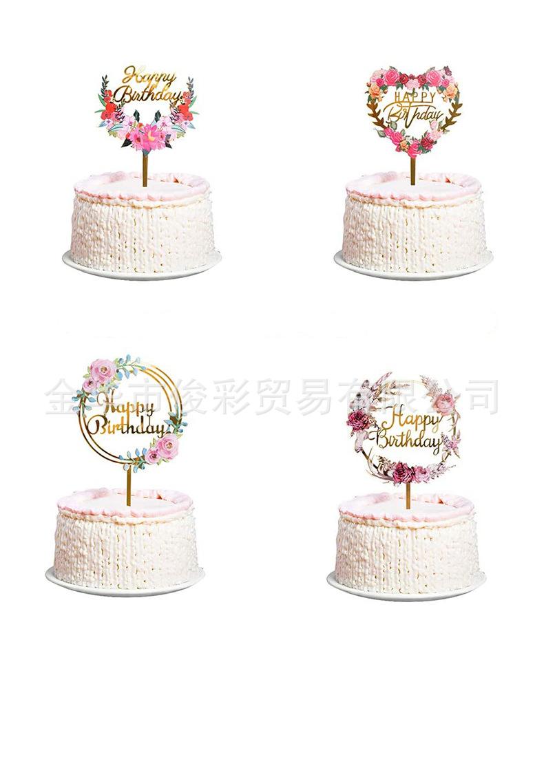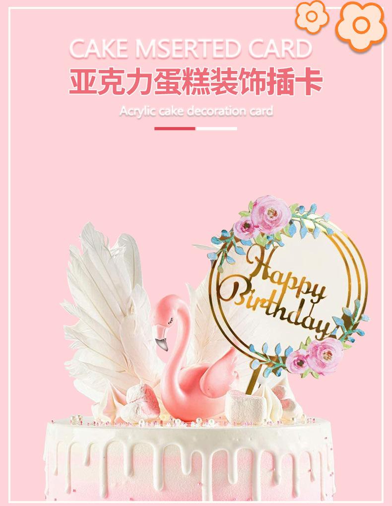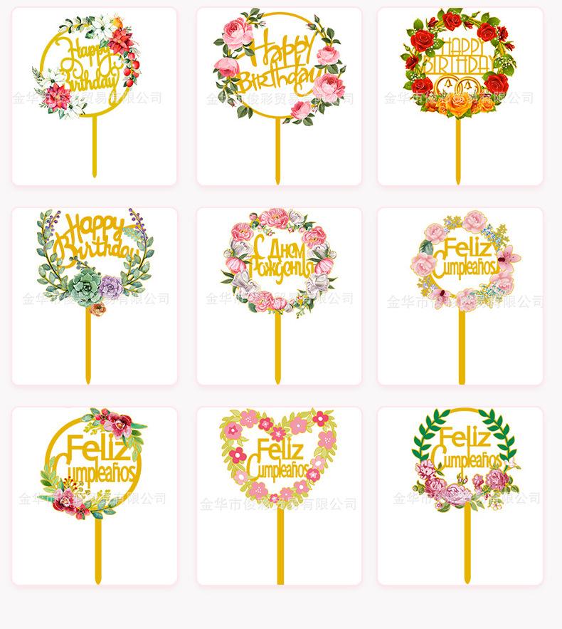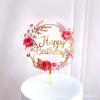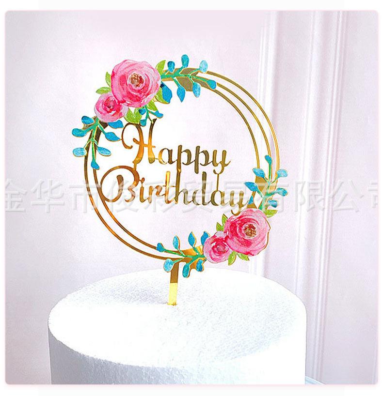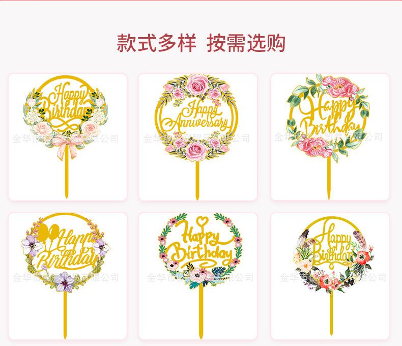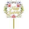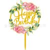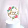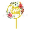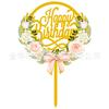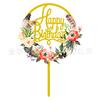 Decoración de pastel de fiesta transfronteriza de cumpleaños con impresión en acrílico dorado, tarjeta de pastel de flores, sombrero de copa, regalo, lote directo