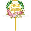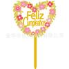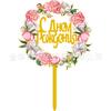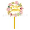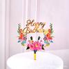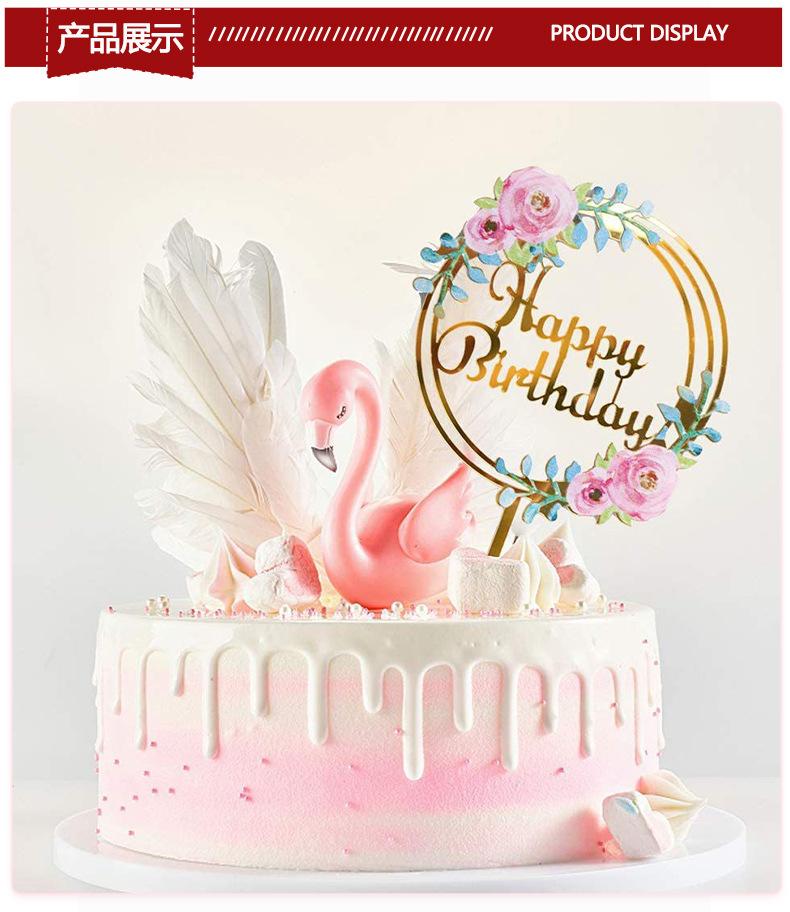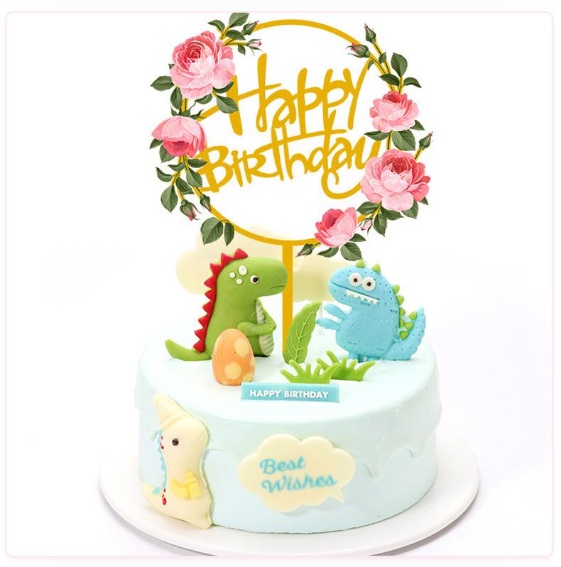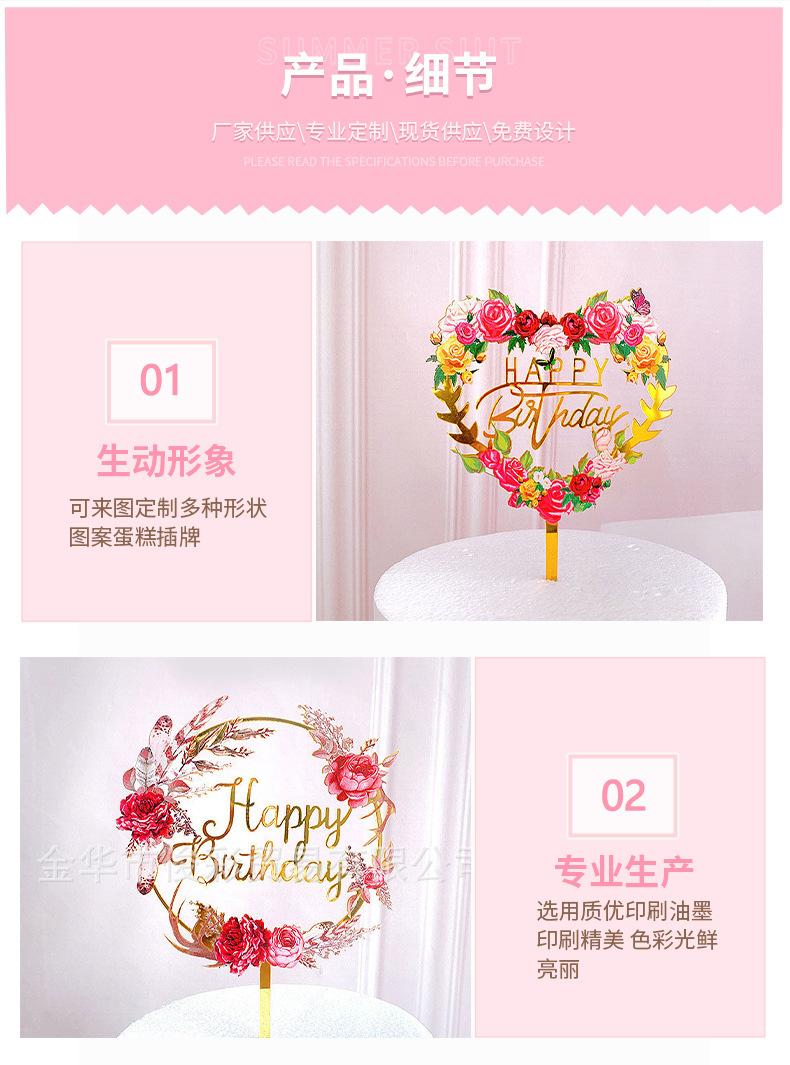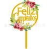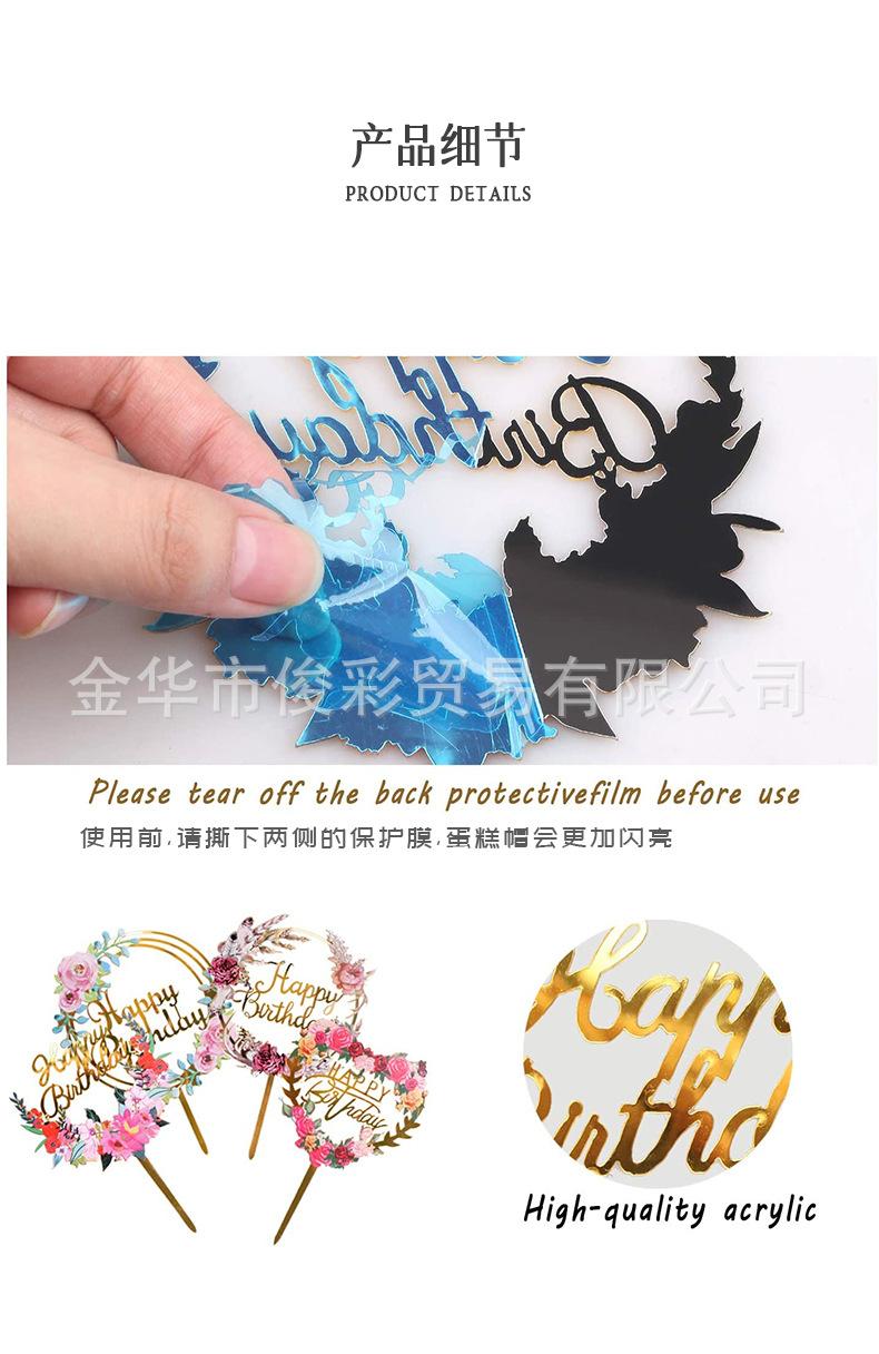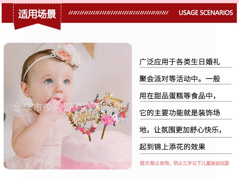 Decoración de pastel de fiesta transfronteriza de cumpleaños con impresión en acrílico dorado, tarjeta de pastel de flores, sombrero de copa, regalo, lote directo