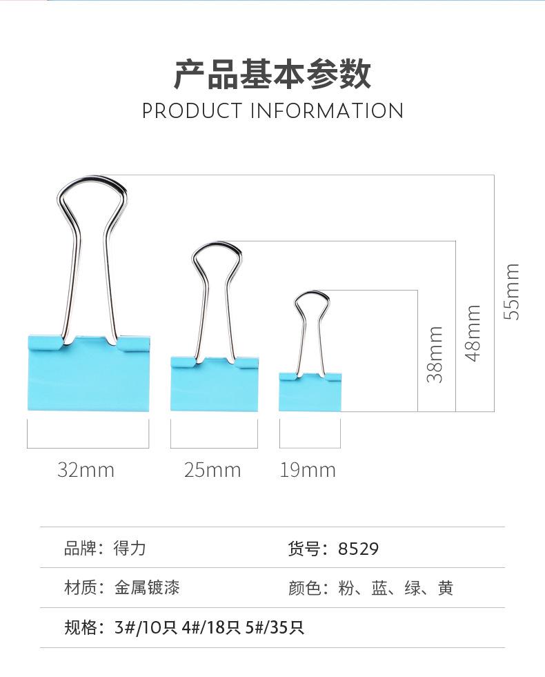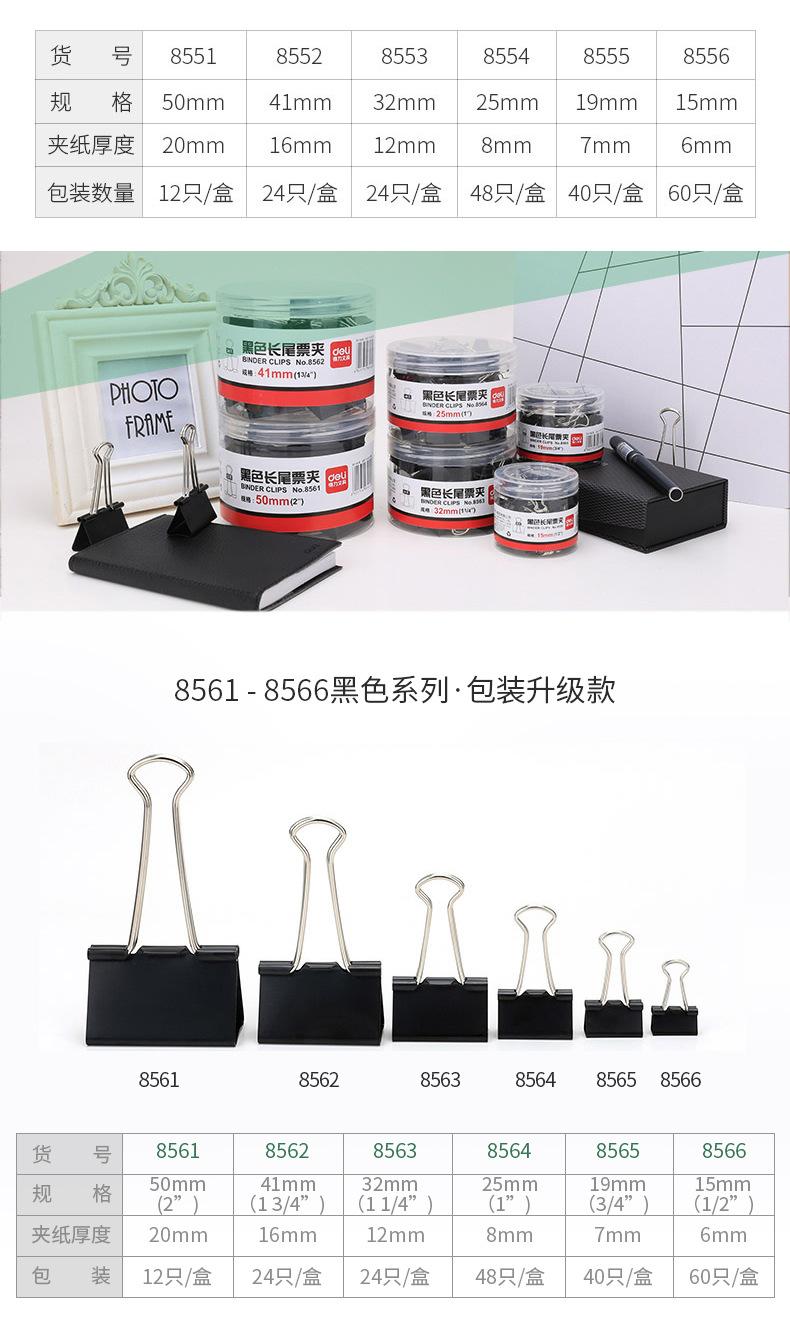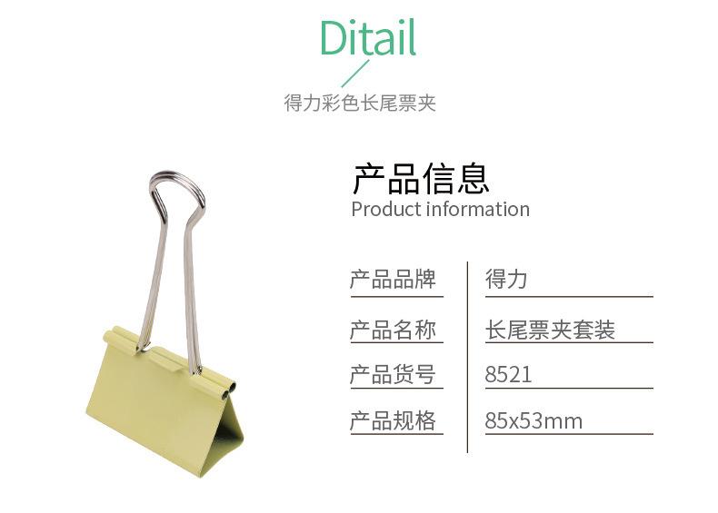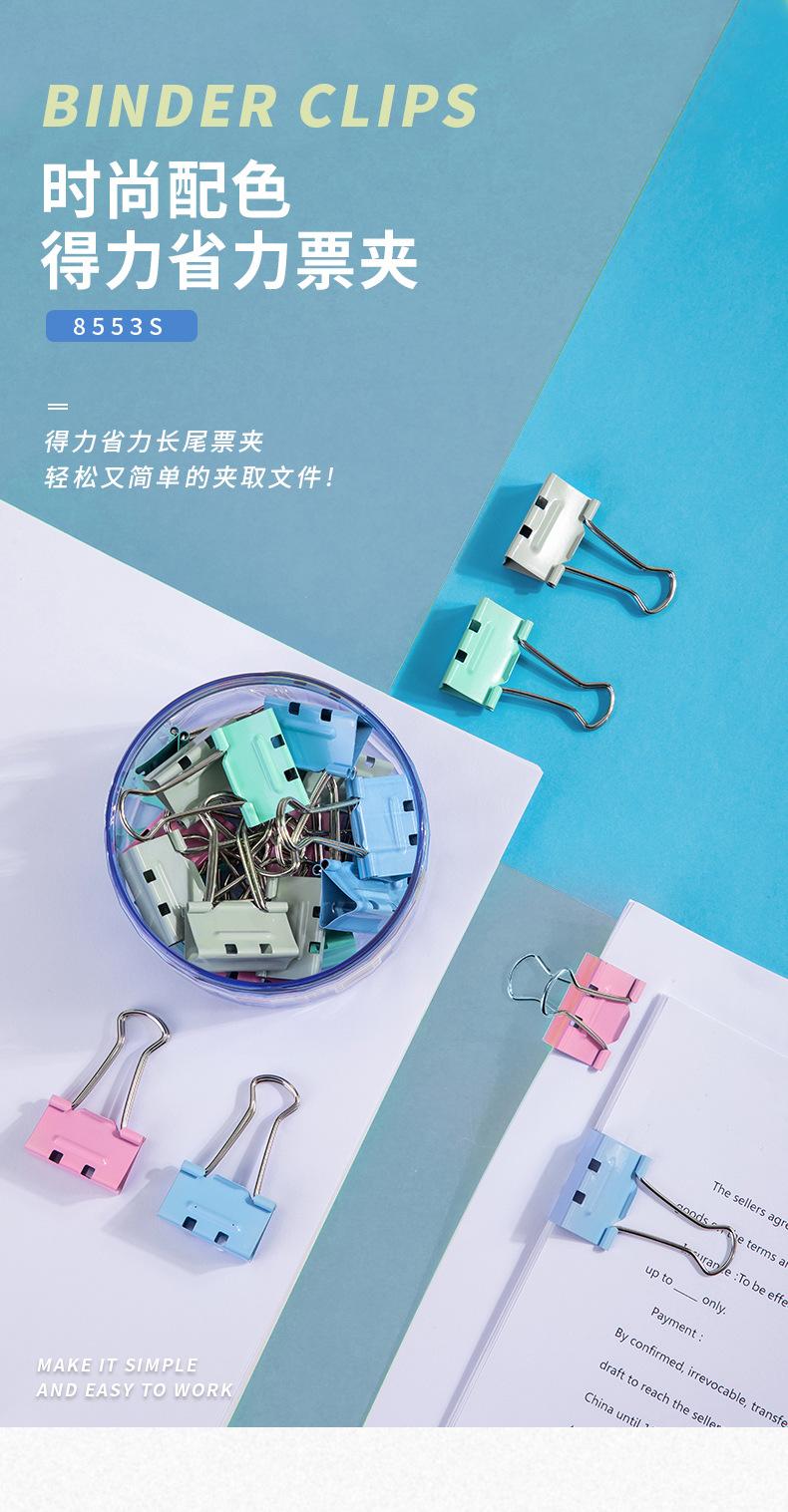 Clip de cola larga de color Deli, clip multifuncional para archivo, clip de cola de milano negro, clip para papel de prueba para estudiantes, clip para datos de hierro