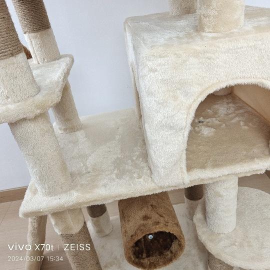 3. Los pilares están envueltos con cuerdas naturales de algodón y lino de alta calidad. A los gatos les encanta afilar sus garras en los pilares envueltos con cuerdas de sisal. Una vez que los gatos se acostumbran a las cuerdas, dejan de interesarles los sofás, mesas, sillas, camas, etc.