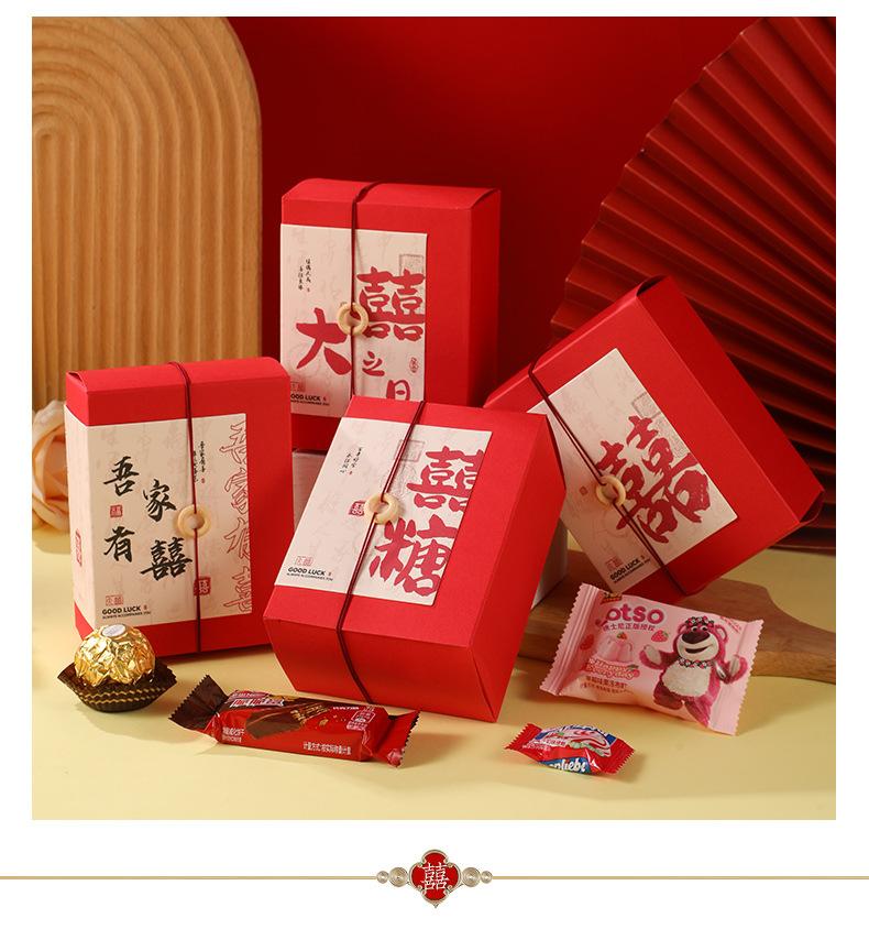 2025 Nueva Caja de Dulces de Boda Recuerdo de Boda Tarjeta Roja Banda de Goma Caja Pequeña de Azúcar Caja de Dulces de Boda Caja de Dulces Caja Vacía
