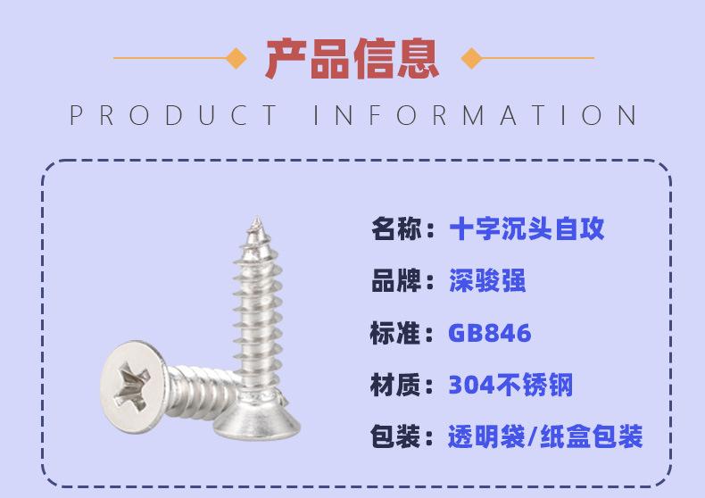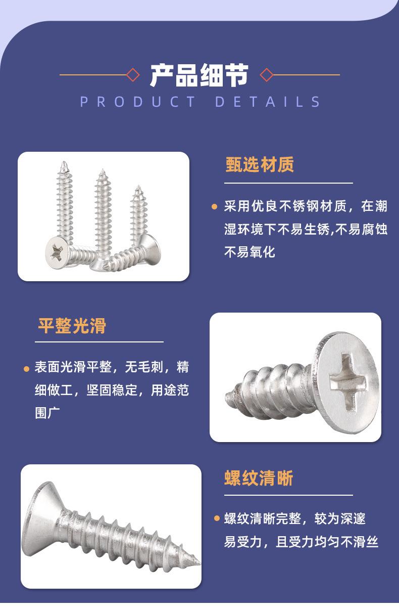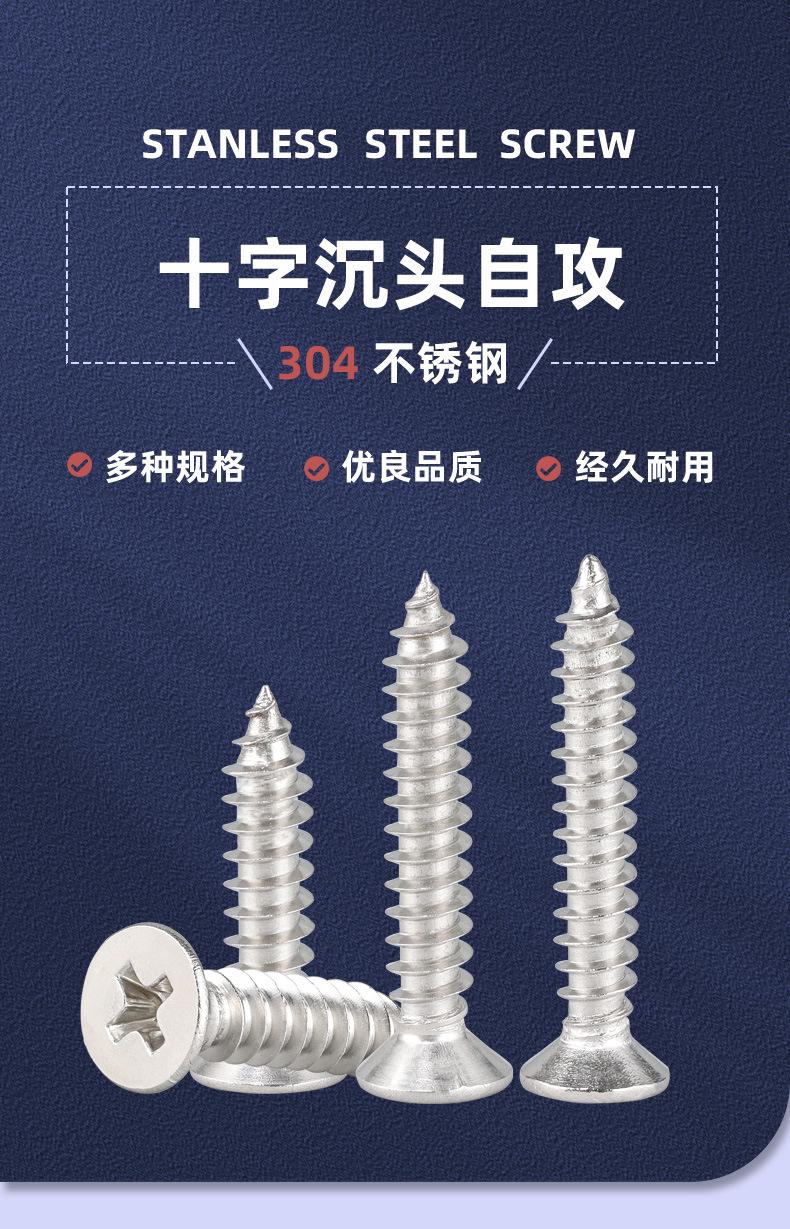 Tornillo autorroscante de acero inoxidable 304, venta al por mayor, cabeza plana cruzada, clavo autorroscante, cabeza avellanada, autorroscante M3M4M5M6M8