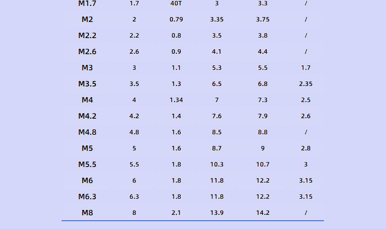 M2*5, M2*6, M2*8, M2*10, M2*12, M2*14, M2*16, M2*18, M2*20, M2.3*6, M2.3*8, M2.3*10, M2.3*12, M2.3*14, M2.3*16...
