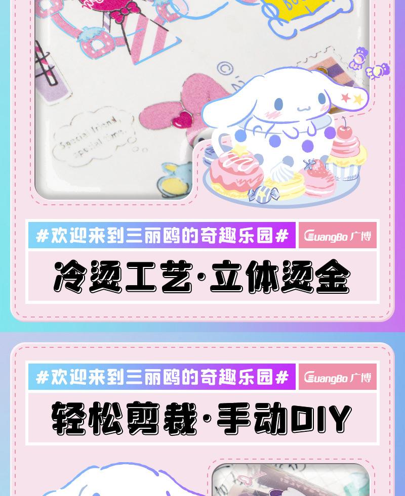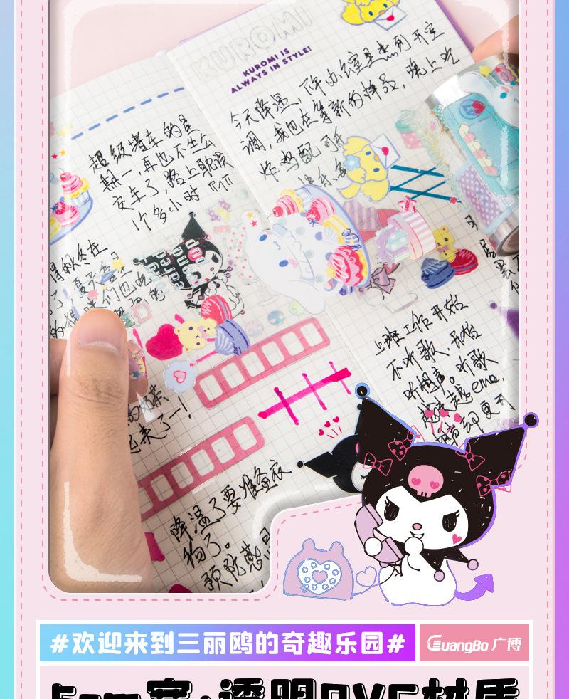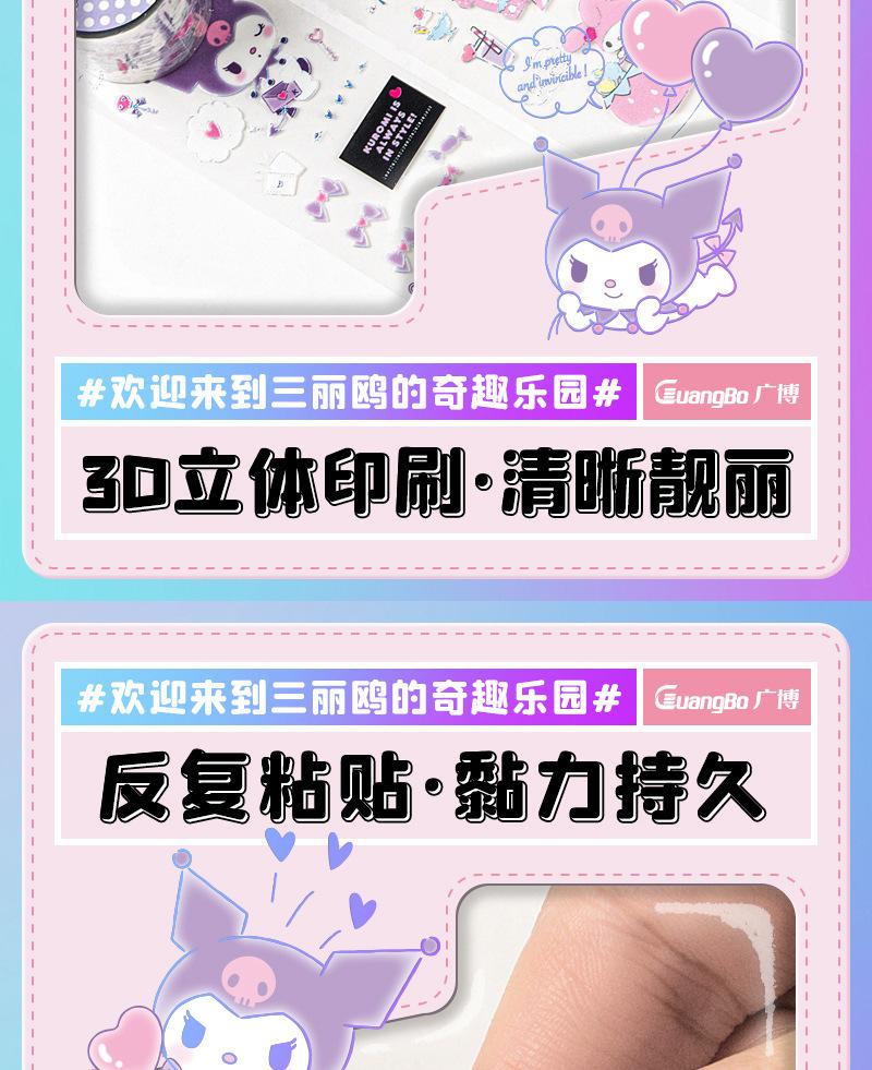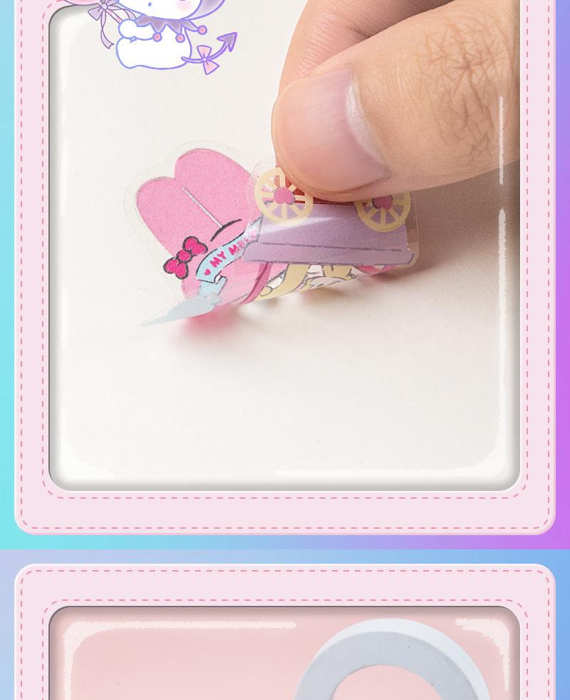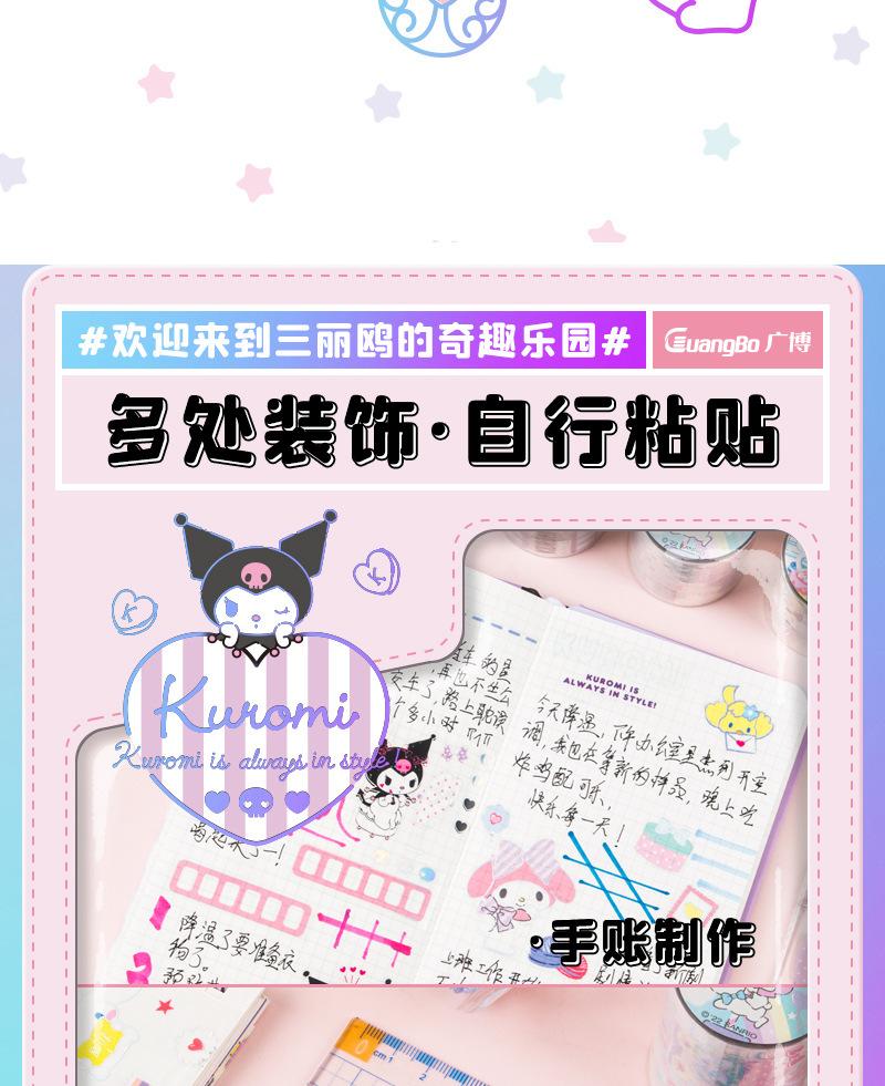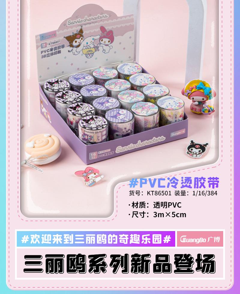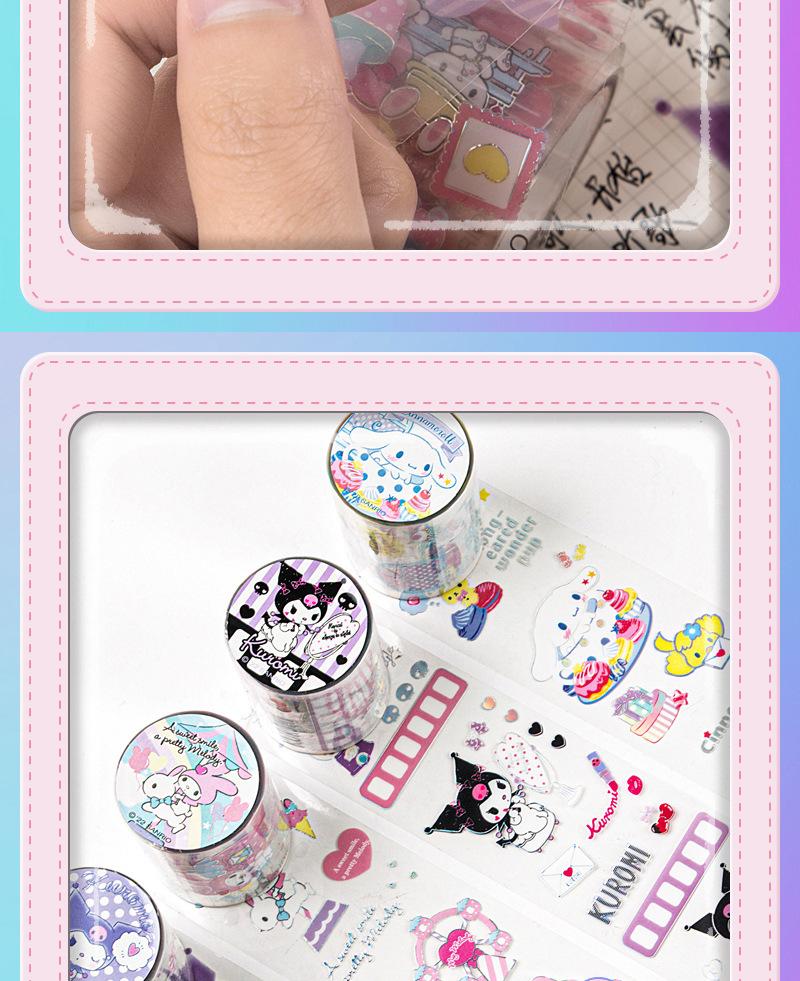 Pegatinas de impresión tridimensional 3D genuinas de Sanrio, Kulomi, cuenta de mano de estudiante, PVC, cinta de cuenta de mano de planchado en frío, venta al por mayor, bricolaje