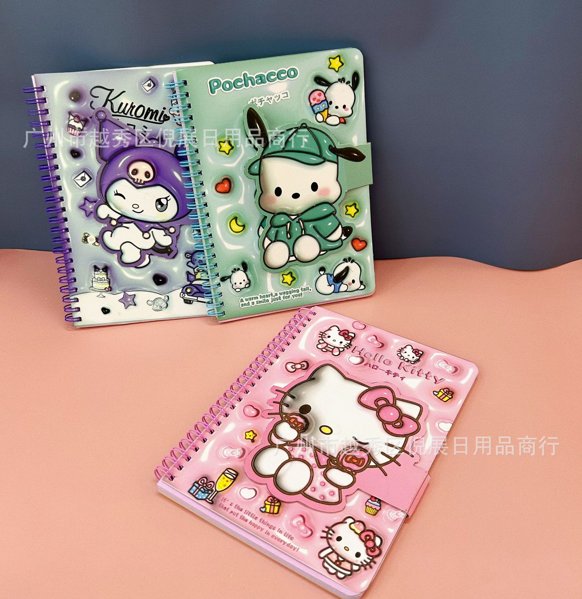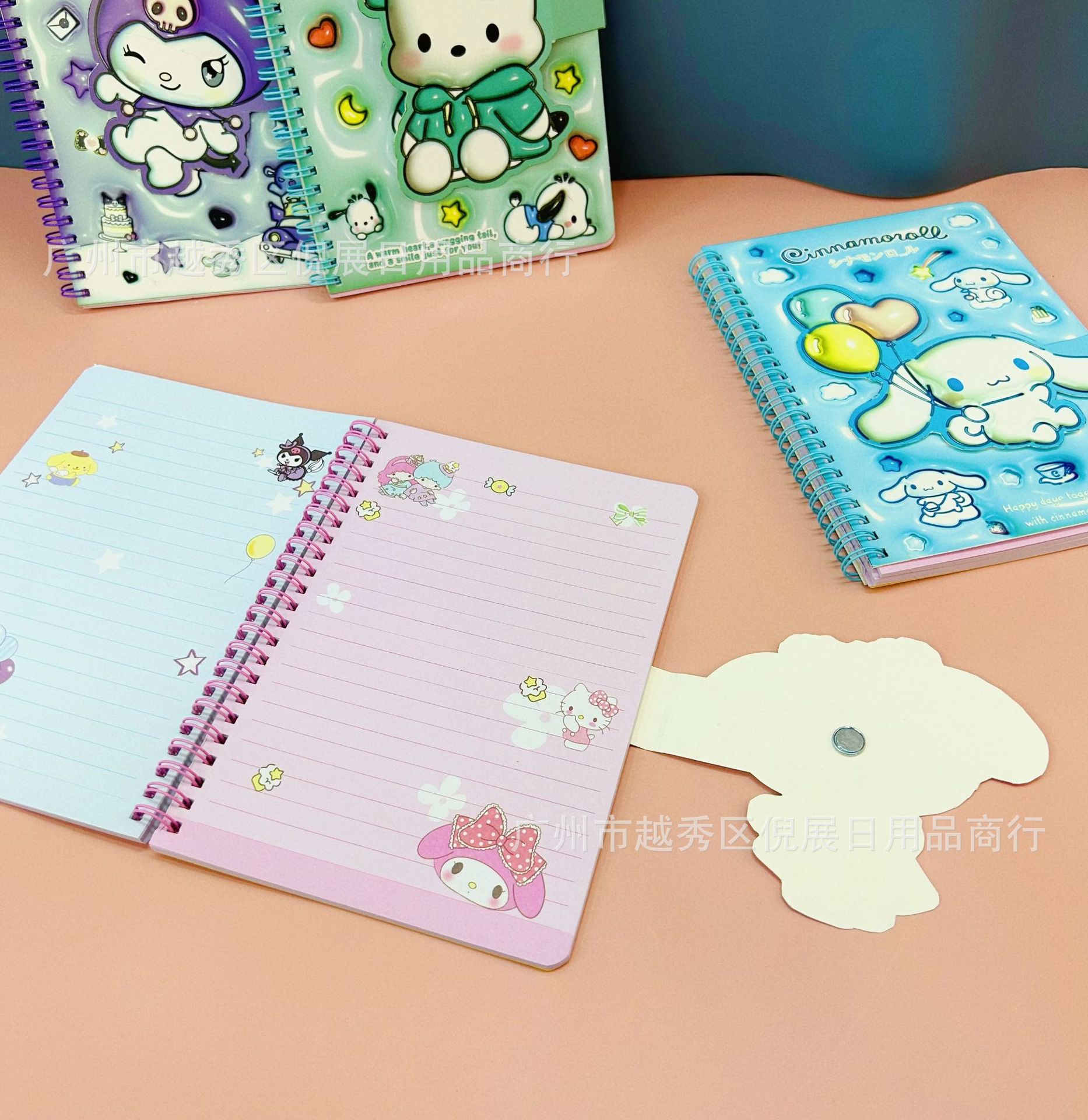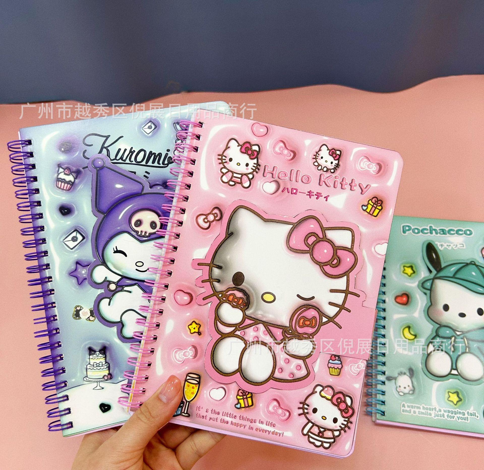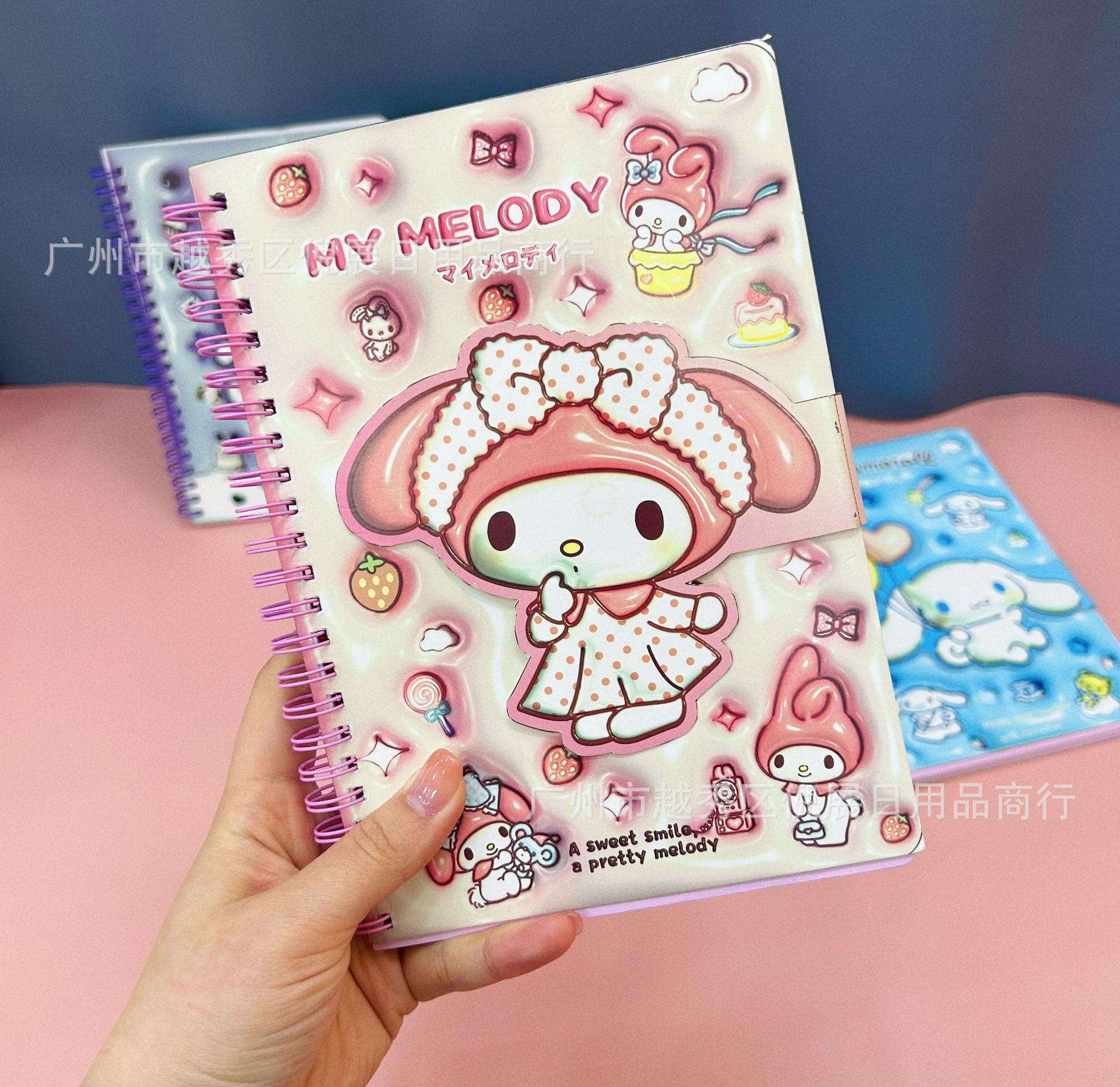 Cuaderno espiral A5 de dibujos animados, cuaderno expandible Sanrio grueso con gran valor de color, lindo diario con páginas a color