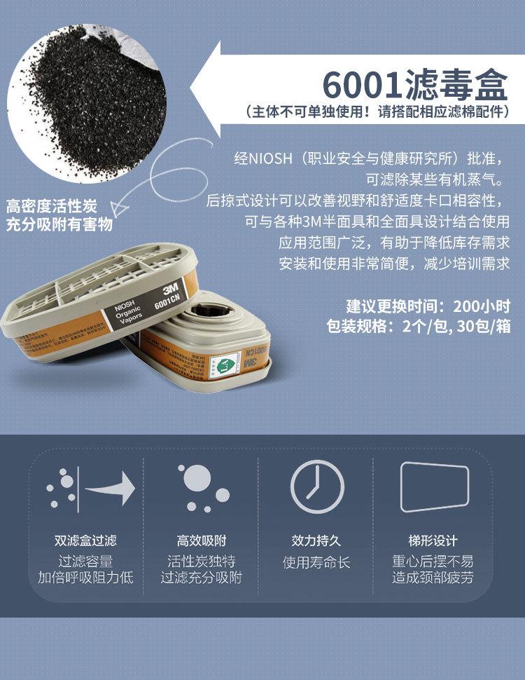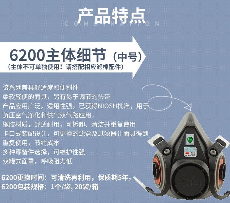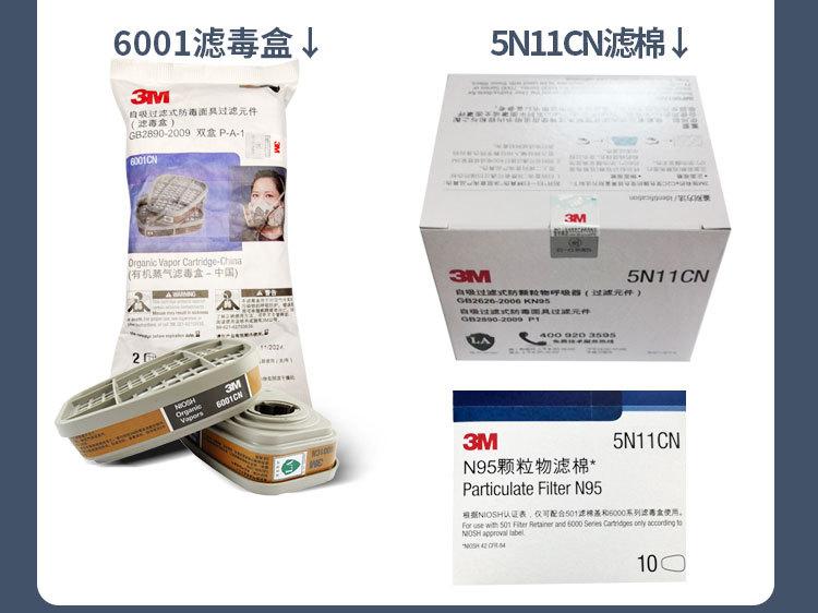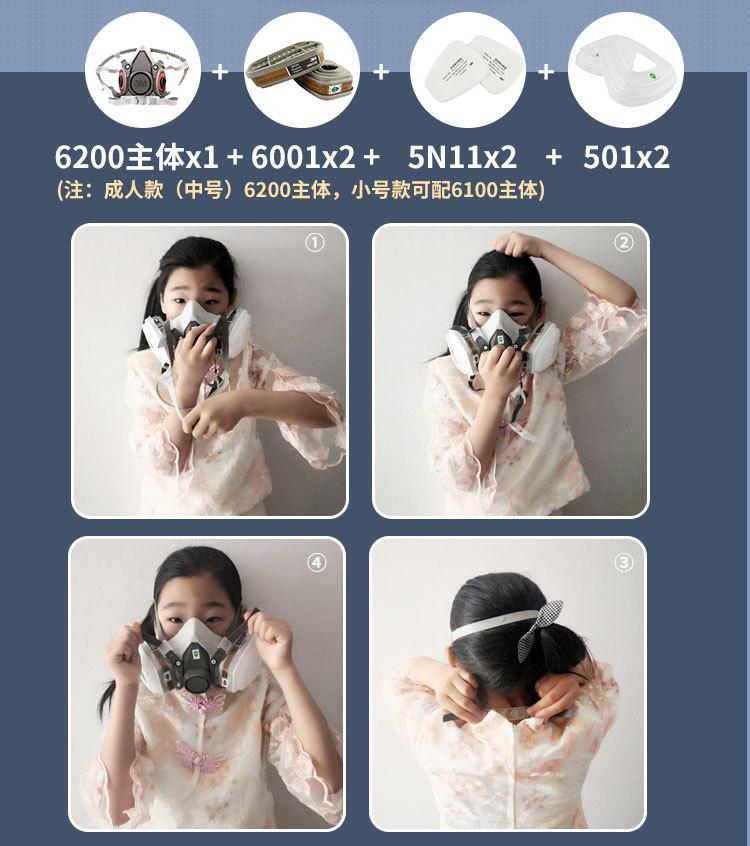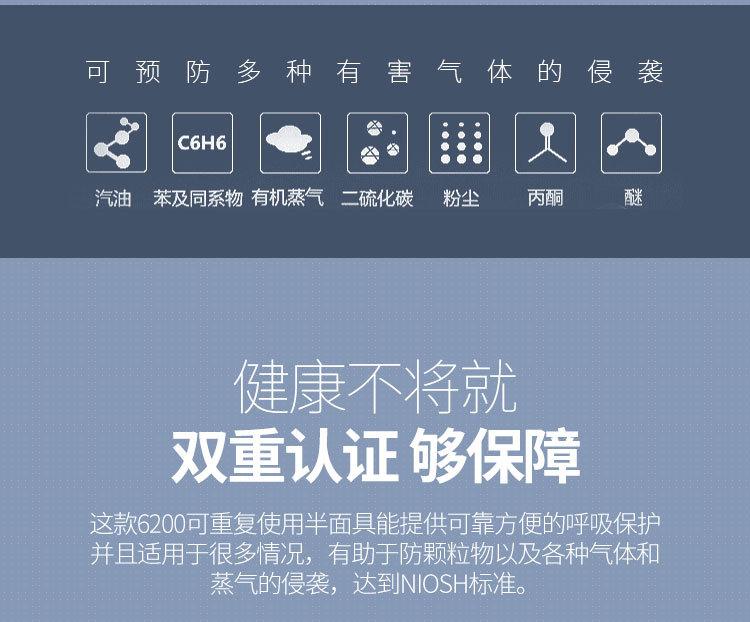 Máscara de gas 3M6200 con 6001, máscara de gas, pintura en aerosol, a prueba de polvo, máscara de respiración para gases orgánicos químicos.