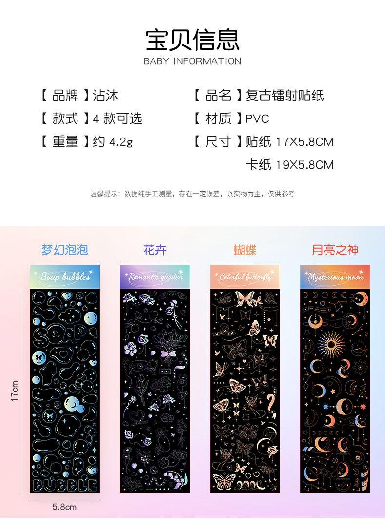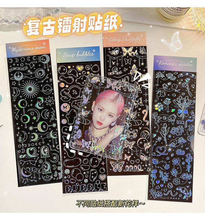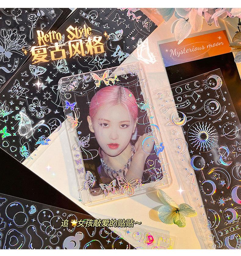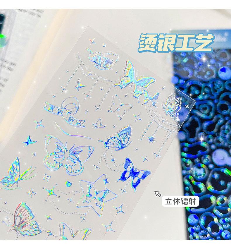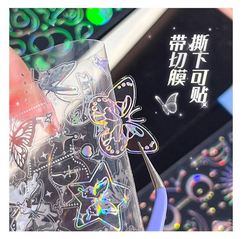 Cinta de mariposa láser con degradado retro, pegatinas de película Flash impermeables, pegatinas de material decorativo para diario Chuck, patrón pequeño
