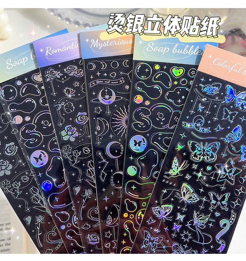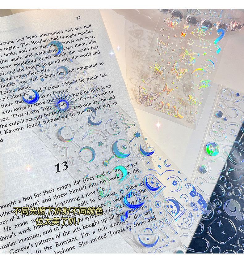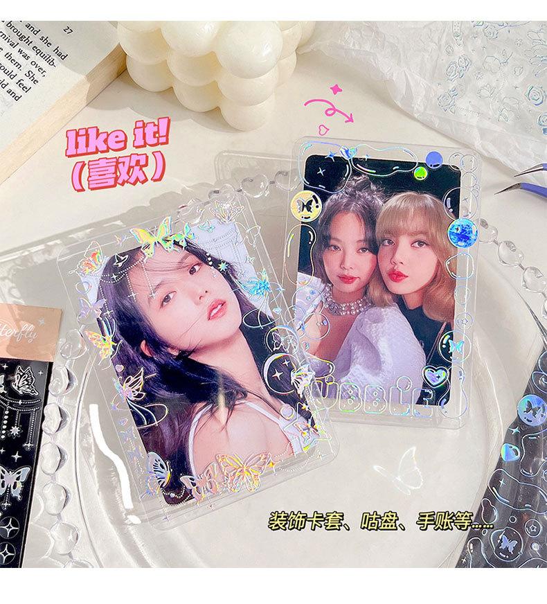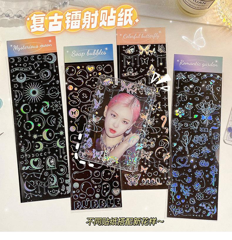 Cinta de mariposa láser con degradado retro, pegatinas de película Flash impermeables, pegatinas de material decorativo para diario Chuck, patrón pequeño