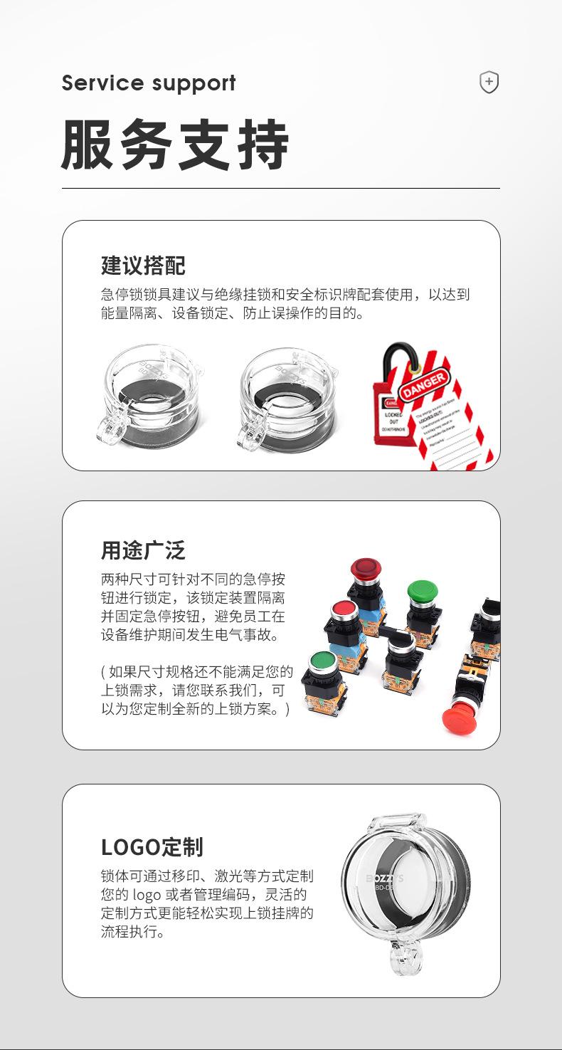 Bozzys Candado de Seguridad Industrial Loto Etiqueta Candado Apagado Aislamiento Botón de Parada de Emergencia Cubierta de Bloqueo de Interruptor Venta al por Mayor
