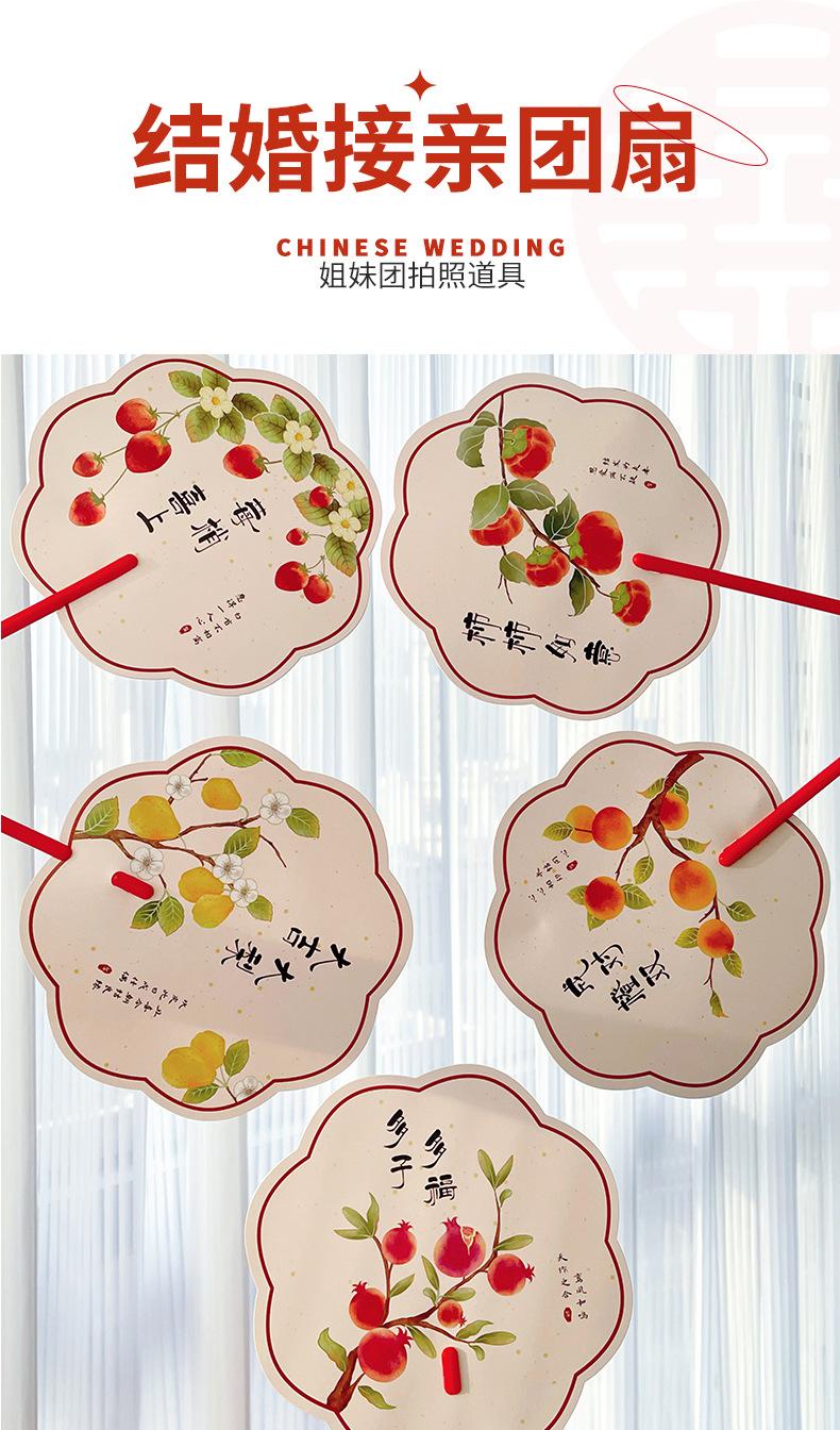 Abanico pequeño para novia de boda Chammit, abanico de bienvenida para damas de honor, accesorios para fotos, abanico creativo chino de doble cara para boda