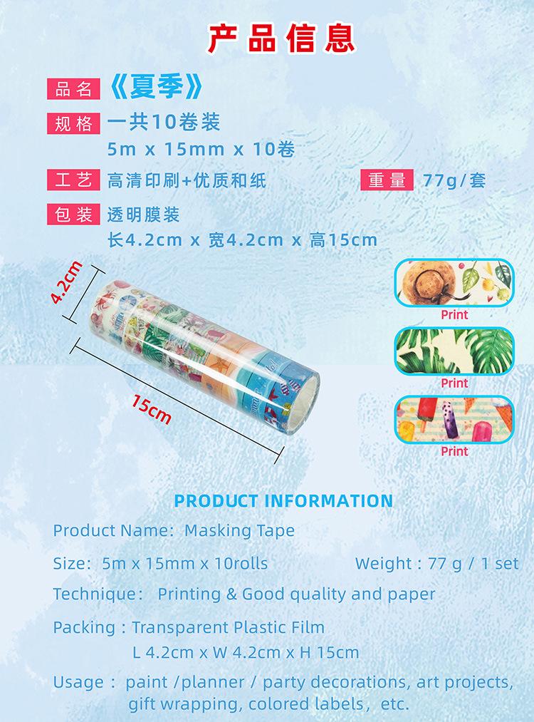 Suministro de Amazon Venta al por Mayor Transfronteriza Estilo Verano Cinta Washi Playa Oceánica Verano DIY Decorativa Cinta para Manualidades