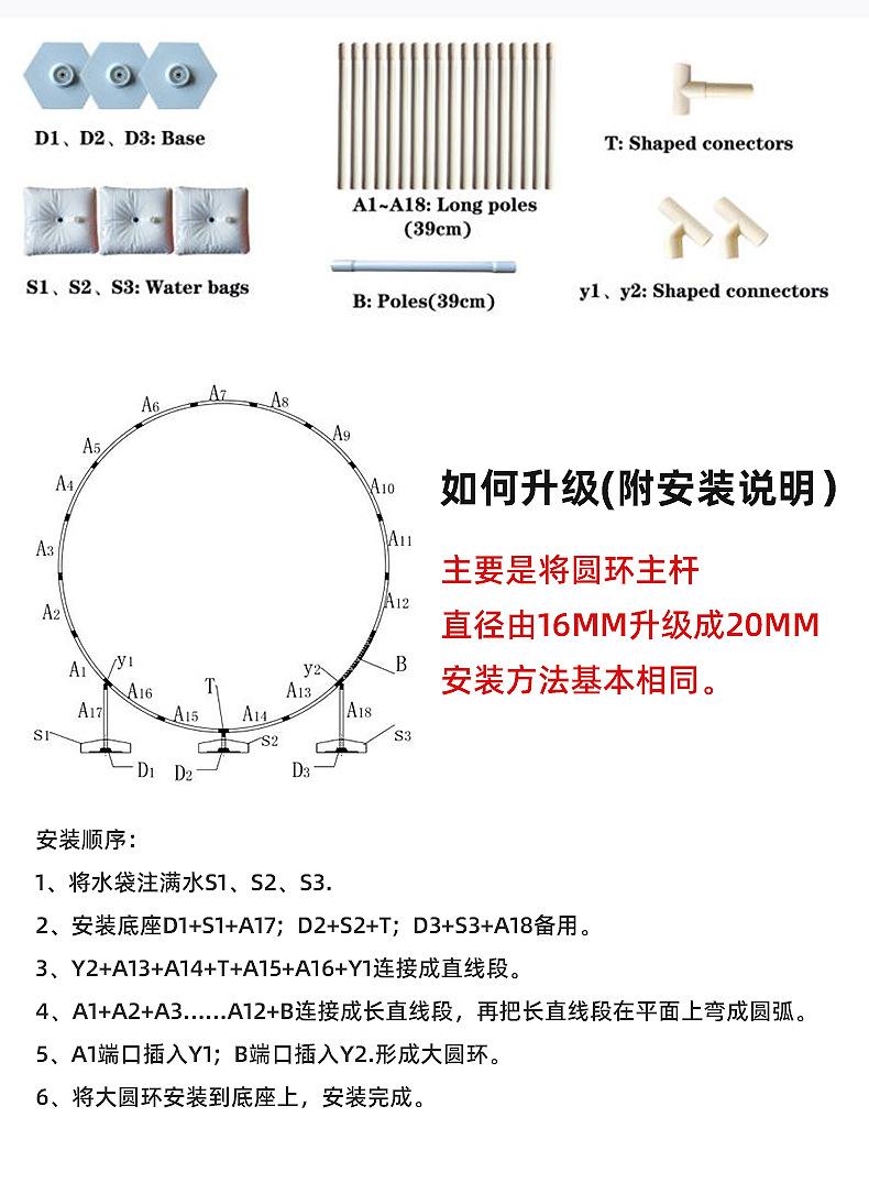 150cm ring with two bases (3kg round water bag) *, 150cm ring with two bases (7kg square water bag), 180cm rin...