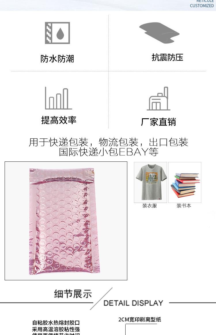 | Venta directa de fabricantes, comercio electrónico, bolsas de burbujas para ropa, arco de extrusión, película de burbujas, bolsas de espuma para embalaje exprés de ropa personalizada |