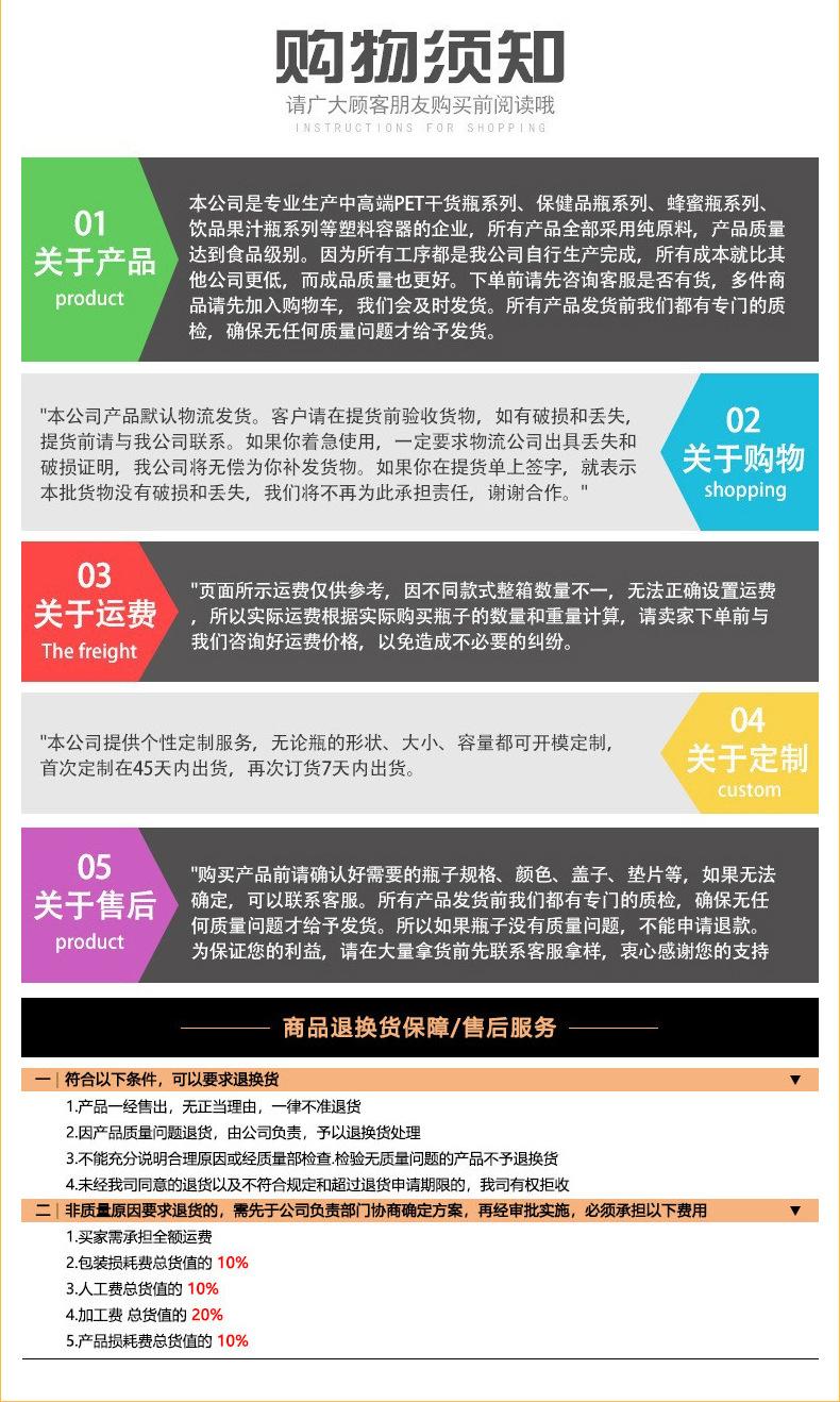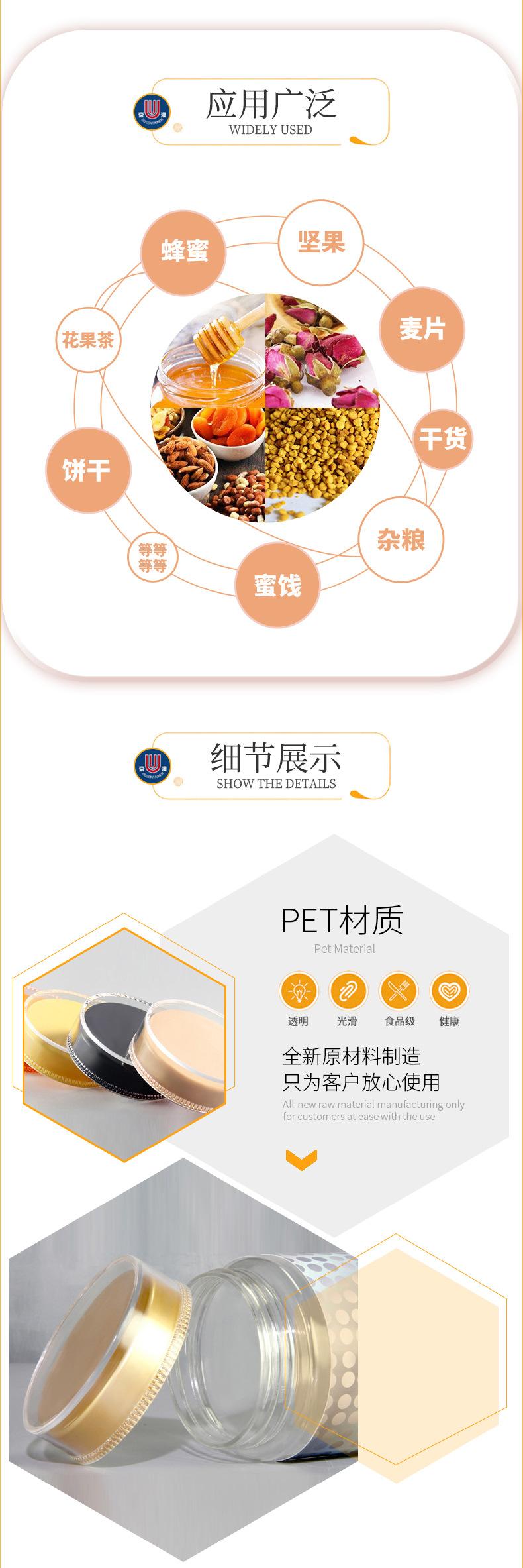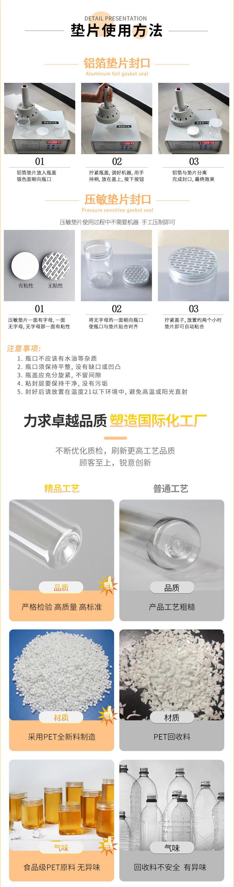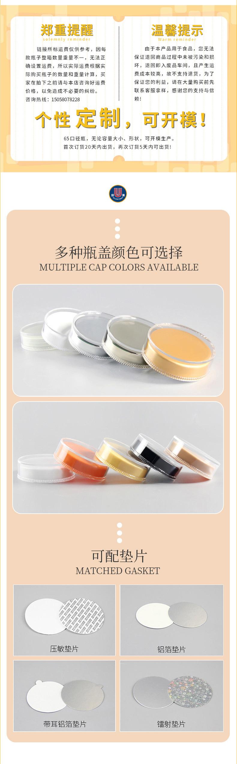 Botella de miel de alta calidad con tapa acrílica de doble capa de 65 puertos, botella de plástico PET transparente, frasco sellado de ginseng americano de grado alimenticio
