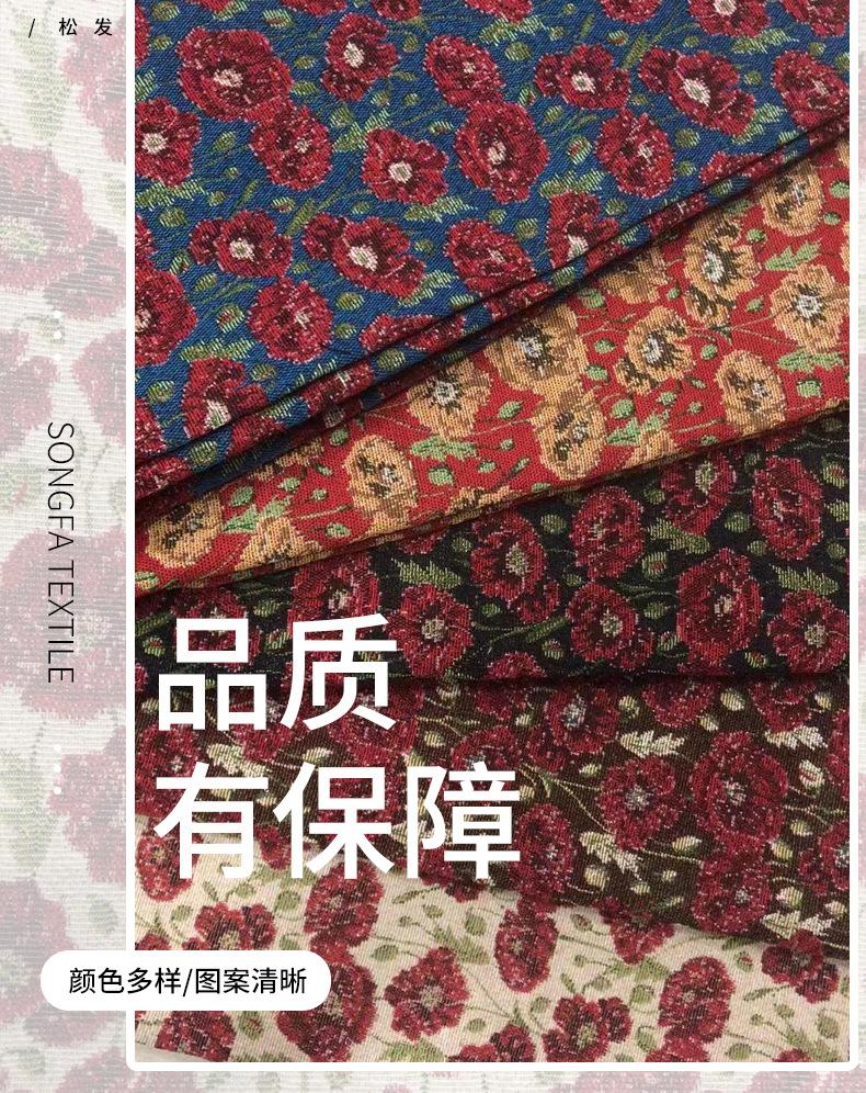 Venta directa de fábrica de tela jacquard lisa de poliéster y algodón, tela jacquard floral retro, tela para bolsas tipo caja