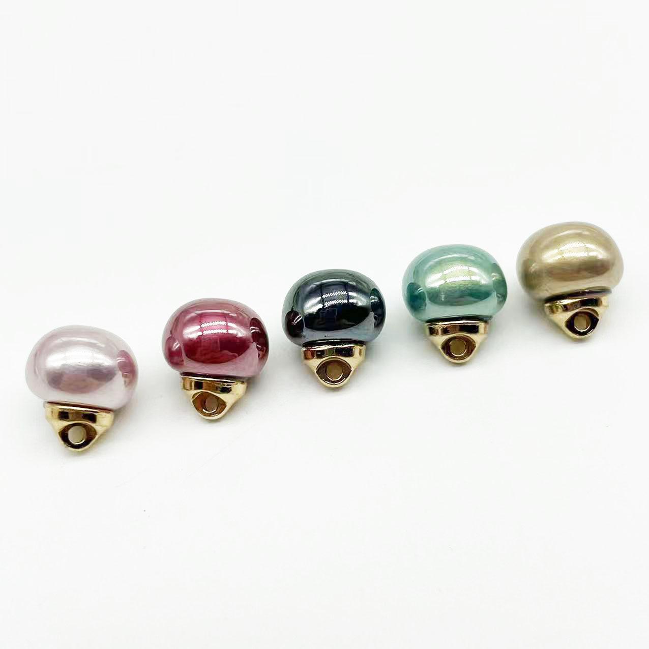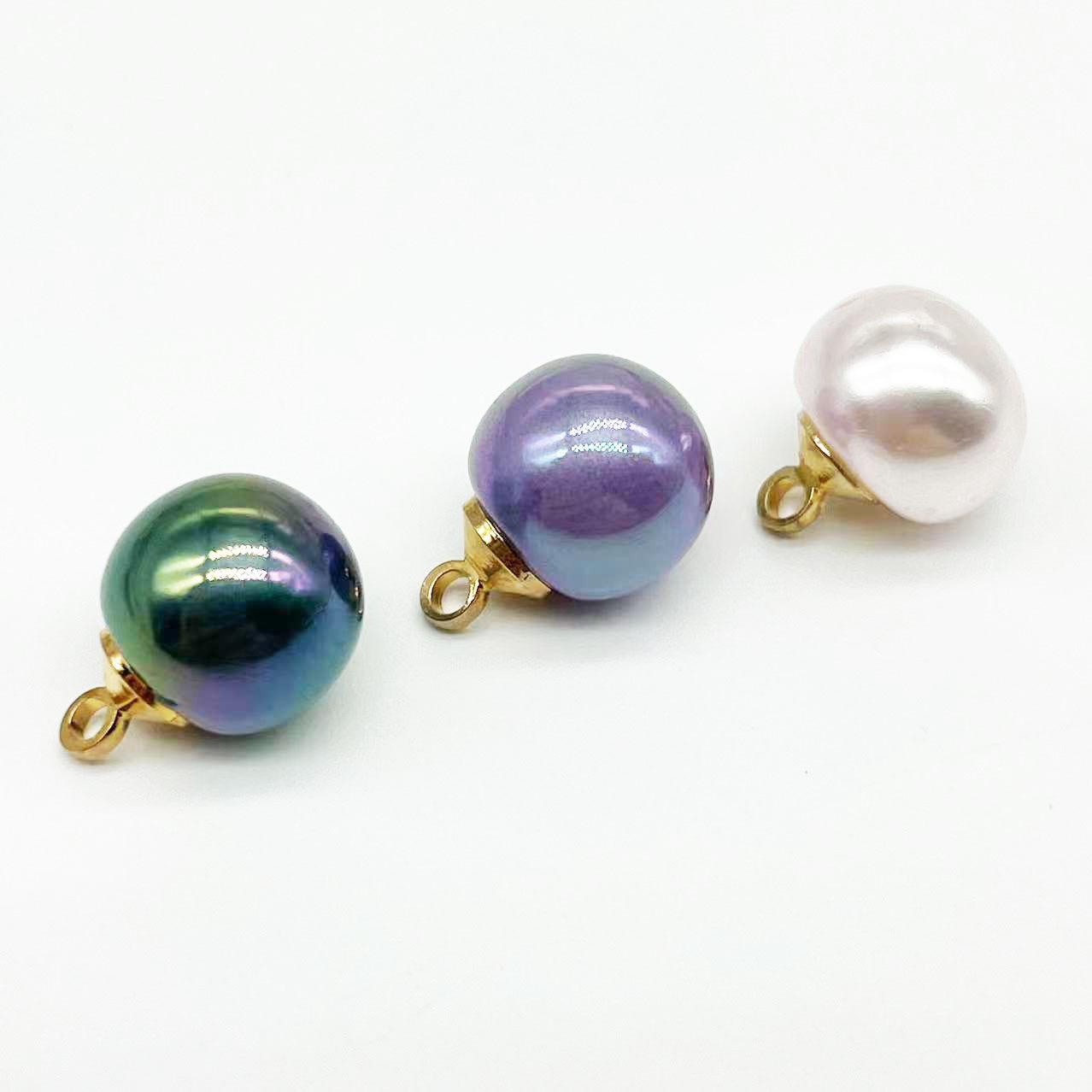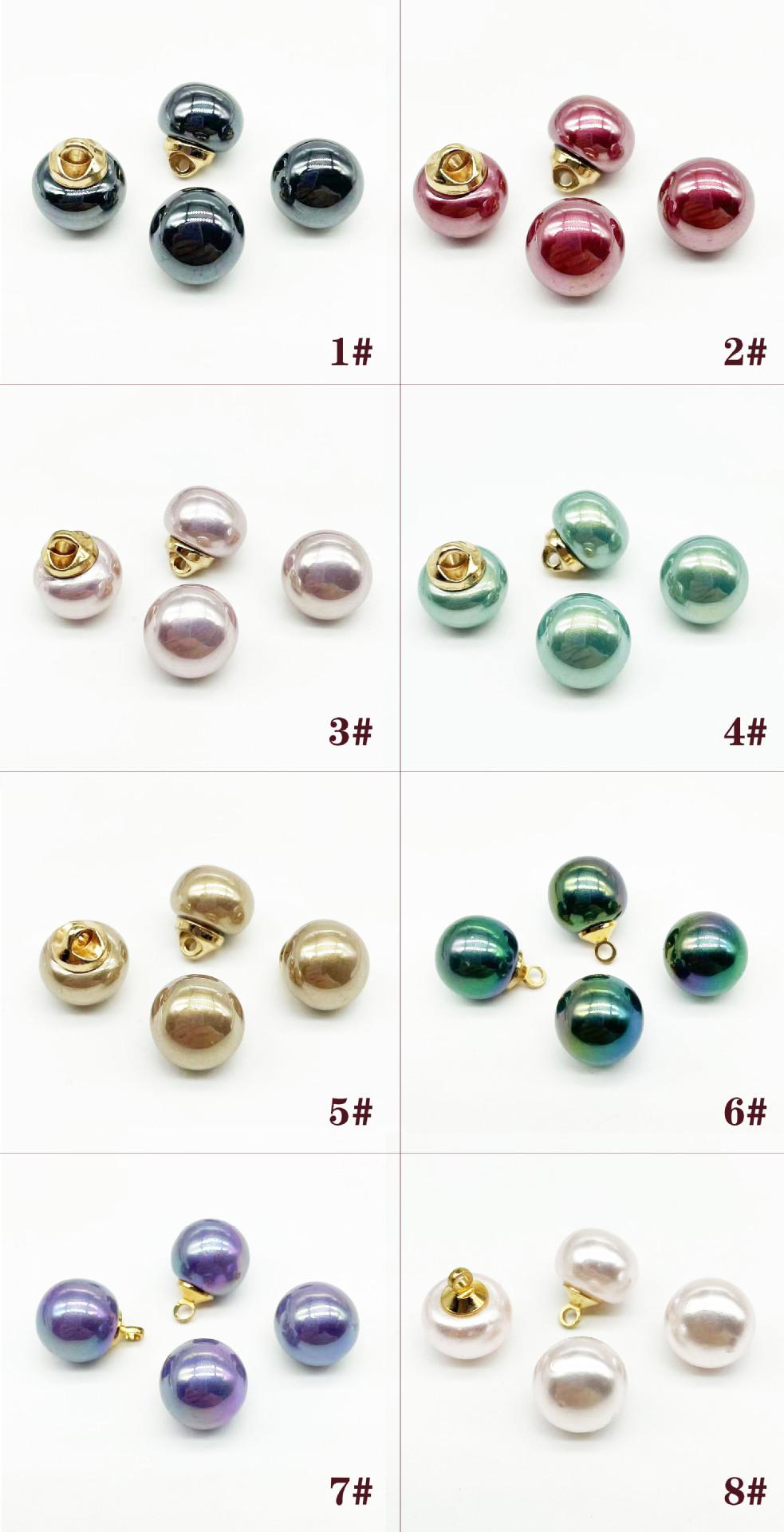 Botón de perla de colores de 10 mm cosido a mano para camisa de mujer, suéter, cheongsam, botones decorativos, botón de cuenta redonda con base de metal