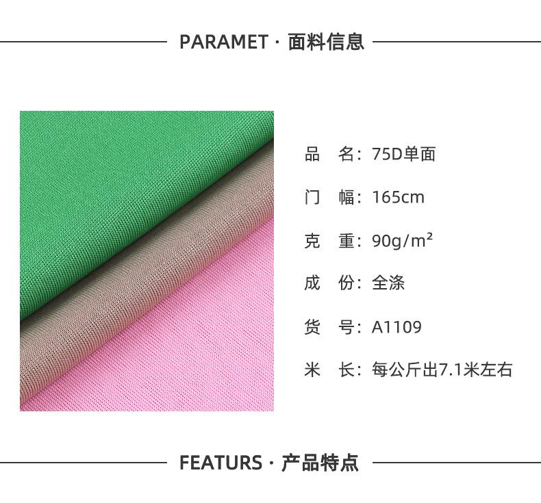 En stock, suministro de tela plana de un solo lado 75D, tela compuesta de poliéster de punto, tela para forro de ropa y vestido.