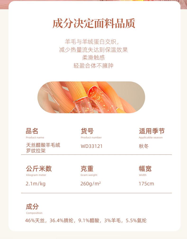 Tejido de manga larga con base cálida de otoño e invierno, de terciopelo, de lana y acetato de tencel, para trajes de otoño.