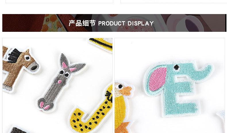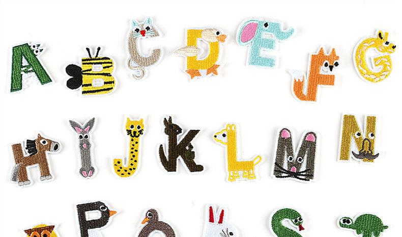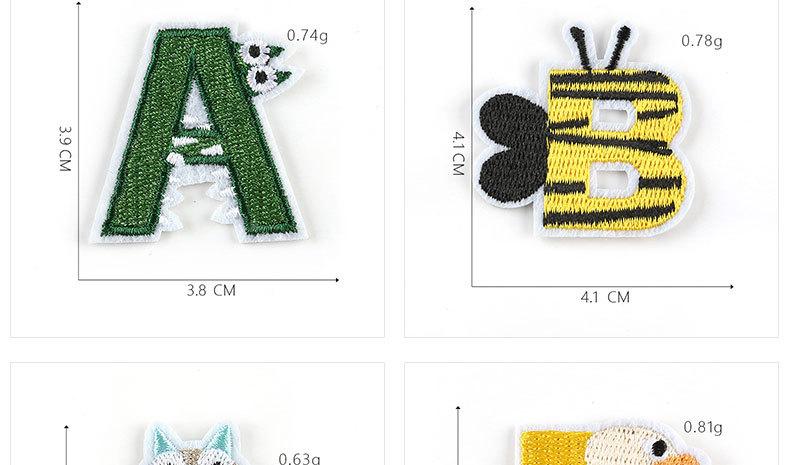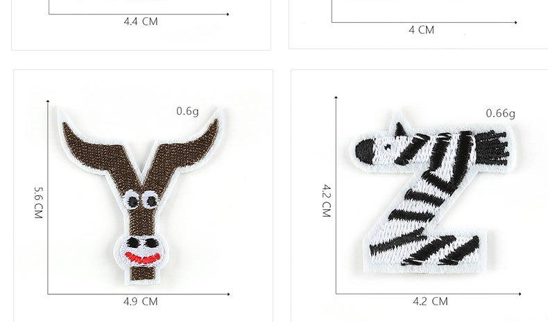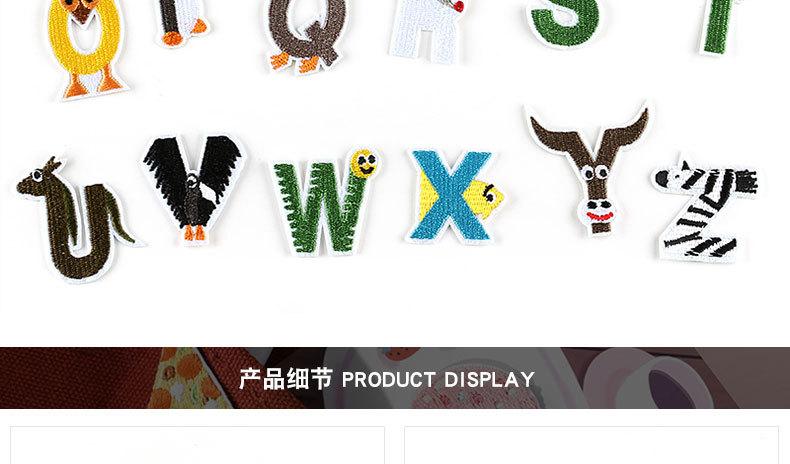 Lindo parche de tela bordado plano al por mayor 26 letras inglesas personalidad parche adhesivo caricatura animal accesorios de ropa etiqueta de tela