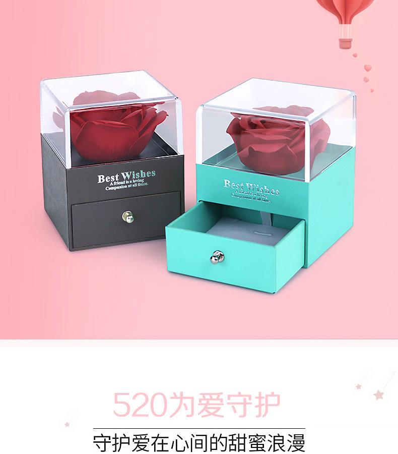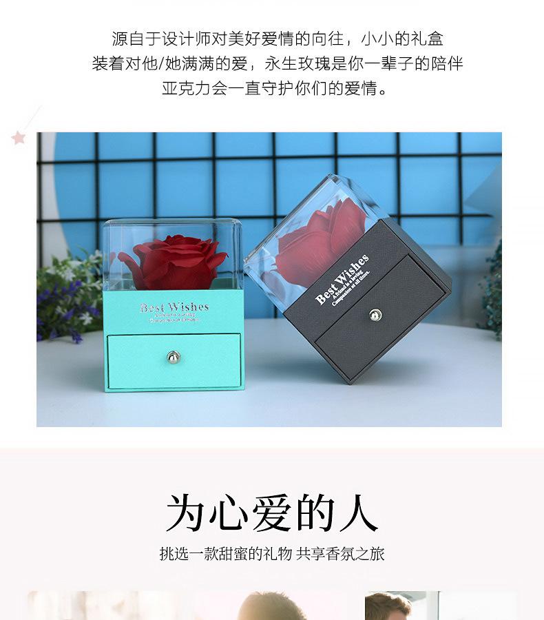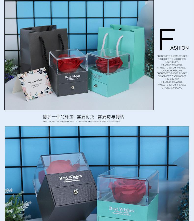 Caja de regalo con una sola rosa de flor eterna, tipo cajón, de acrílico, para collar, joyería, pulsera y embalaje de joyas.