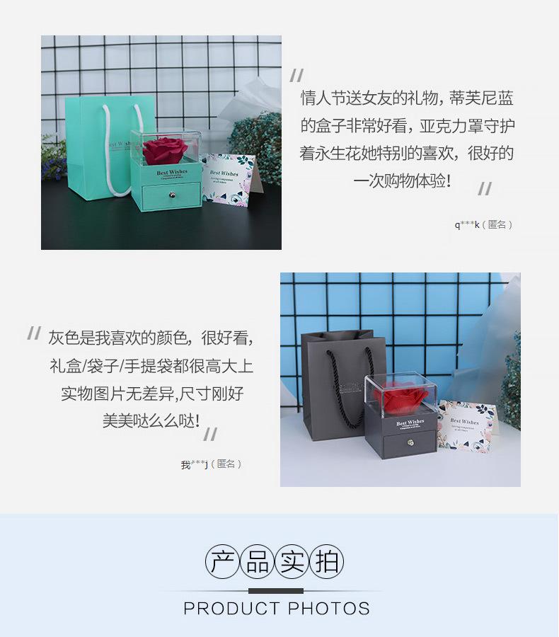 Gray; rose box + acrylic cover + soap flower + handbag + greeting card, Tiffany blue; rose box + acrylic cover...