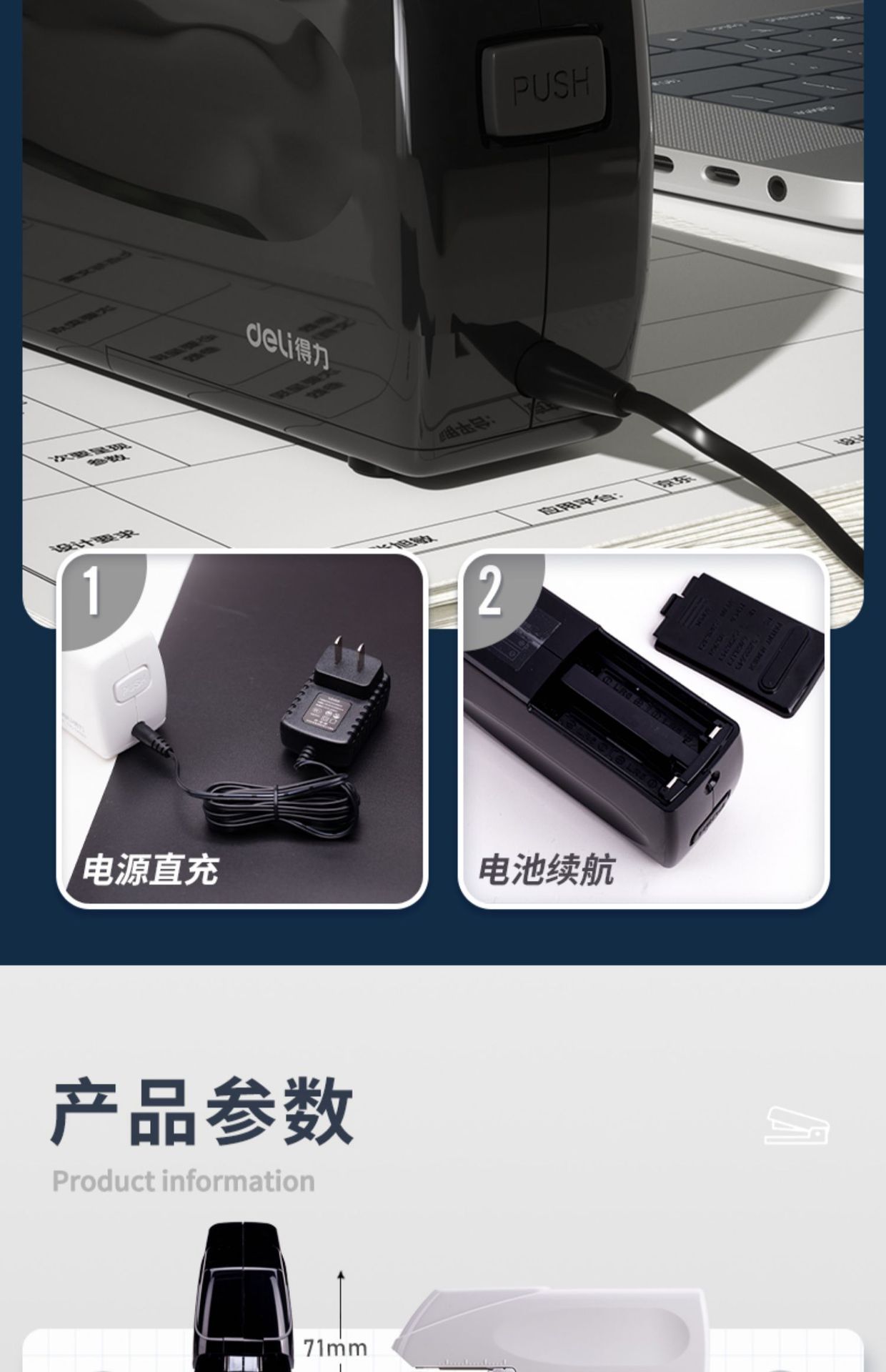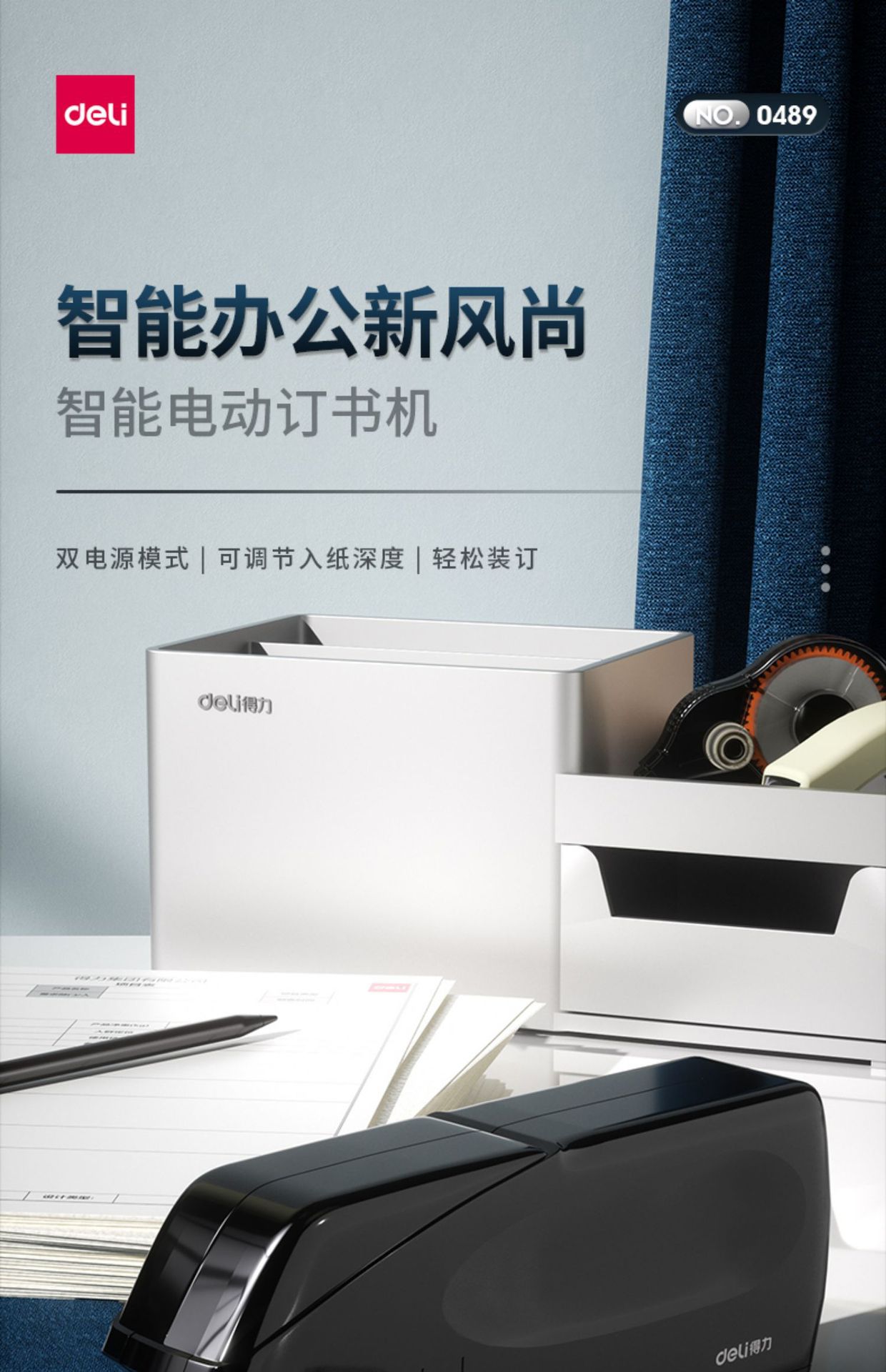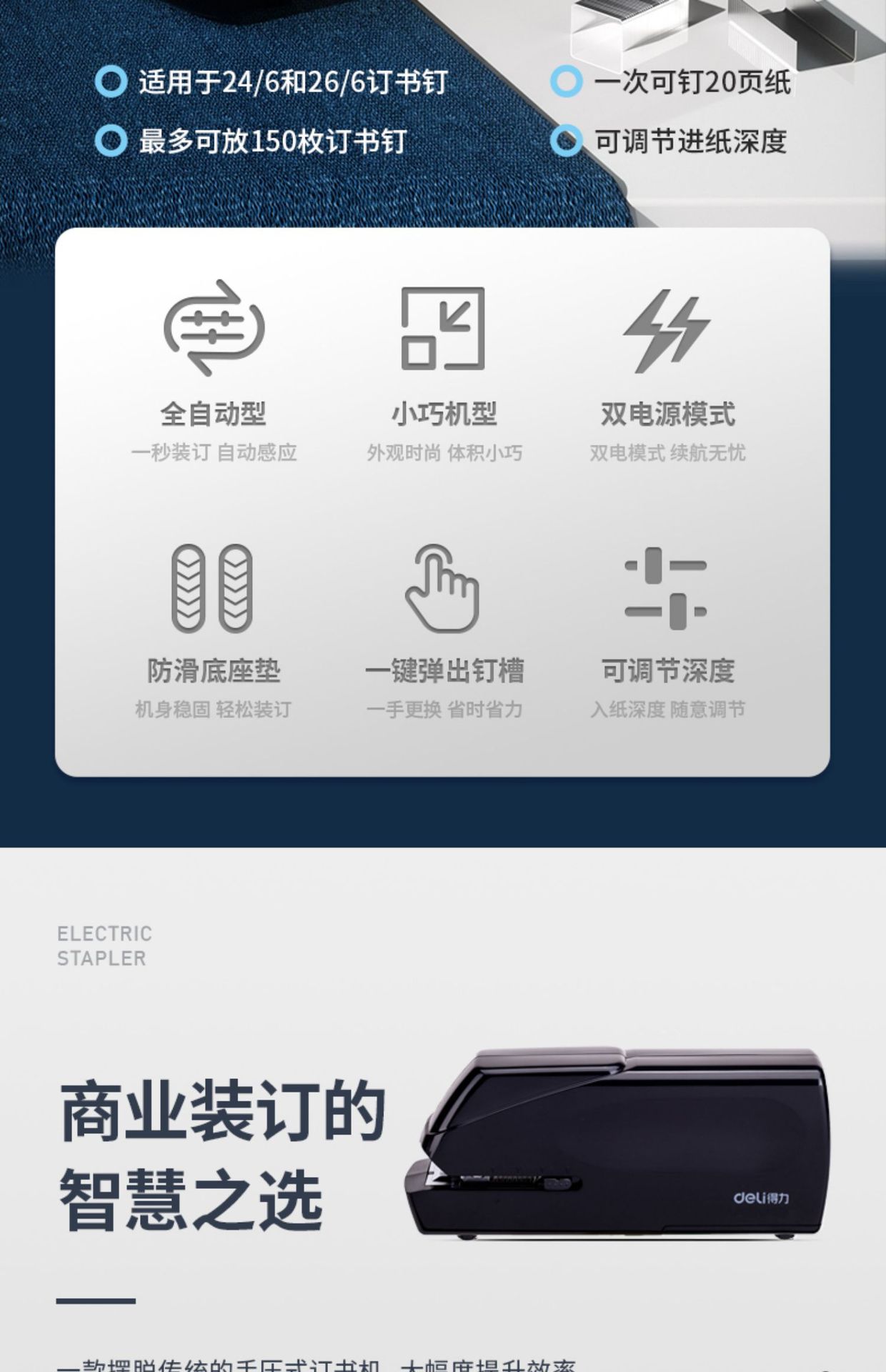 Grapadora eléctrica Deli 0489, grapadora automática para estudiantes, de oficina, con doble fuente de alimentación, máquina de encuadernación de alta resistencia.