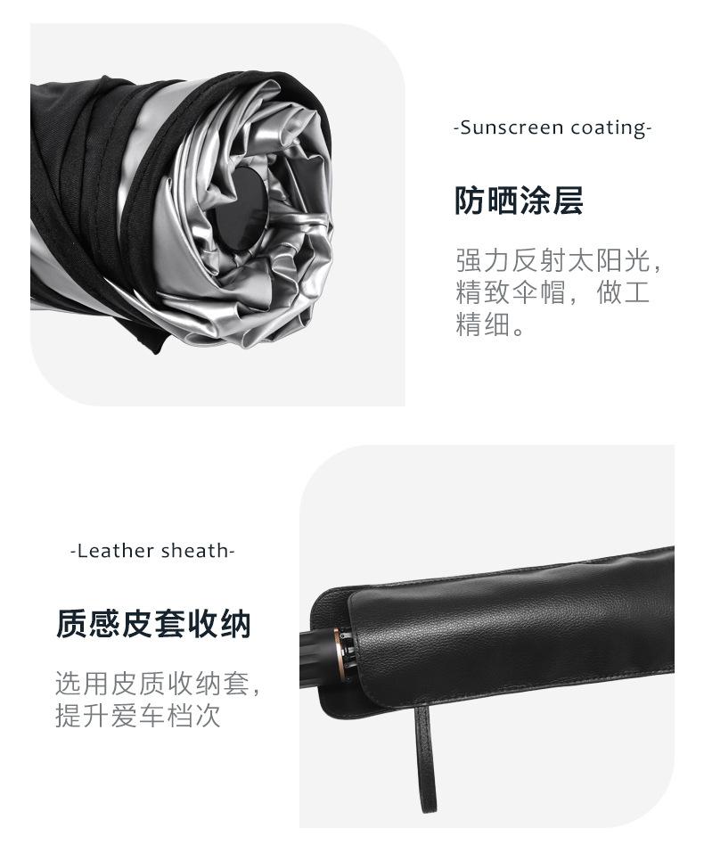 Nuevo paraguas parasol resistente en stockNo es necesario instalar, puede poner un paraguas para dar sombra al sol cuando se estacione.,Muy conveniente;Equipado con un estuche de cuero texturizado, compacto y fácil de guardar, se puede guardar en el hueco de la manija de la puerta o en la guantera del copiloto cuando no está en uso.¡La calidad es excelente!