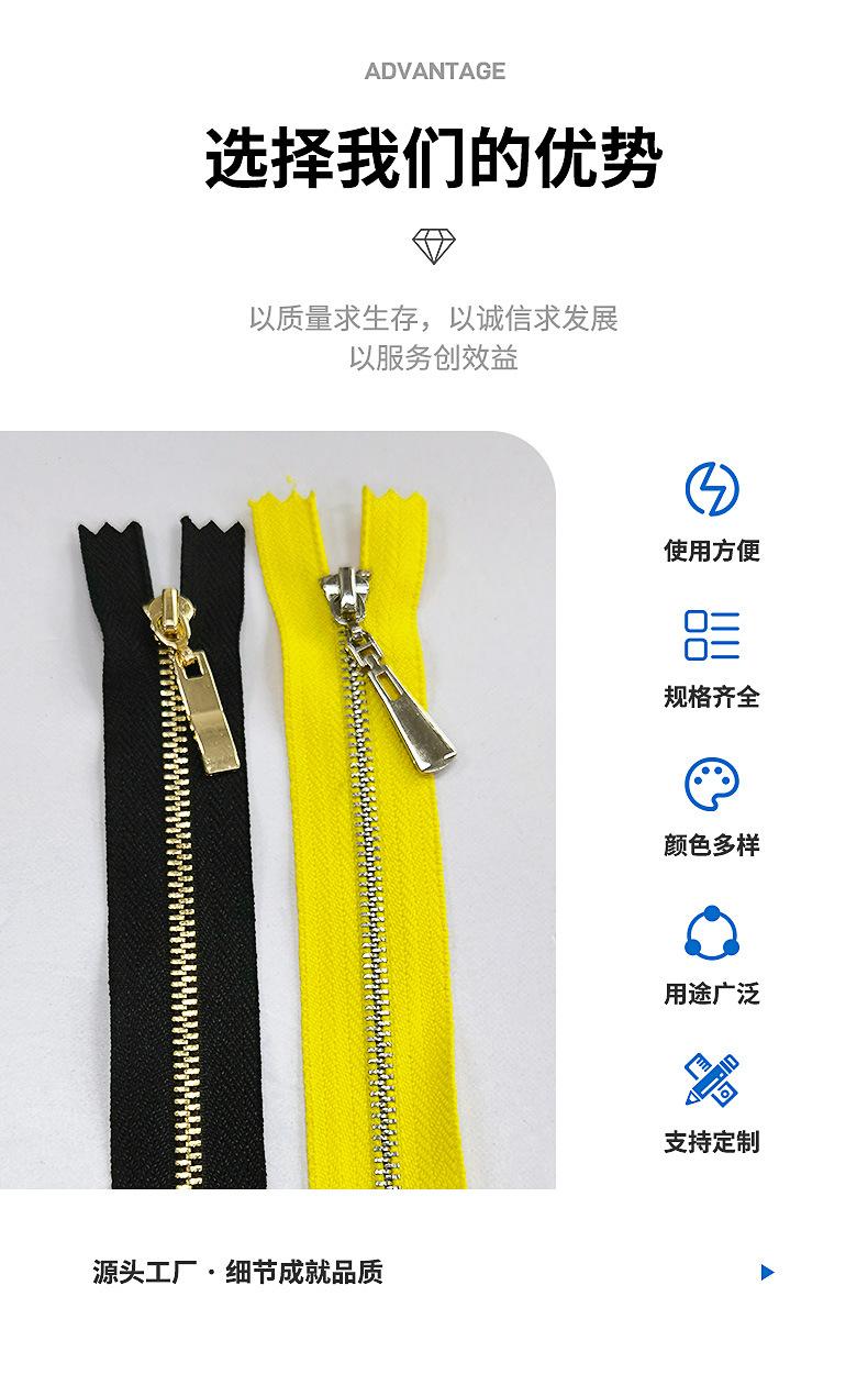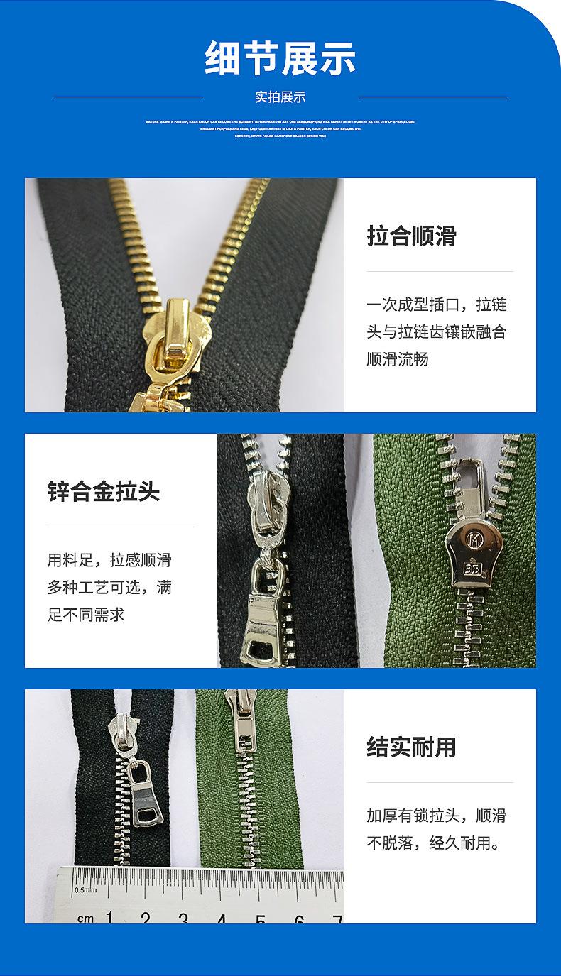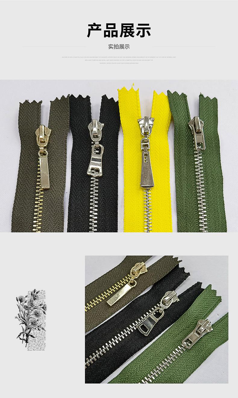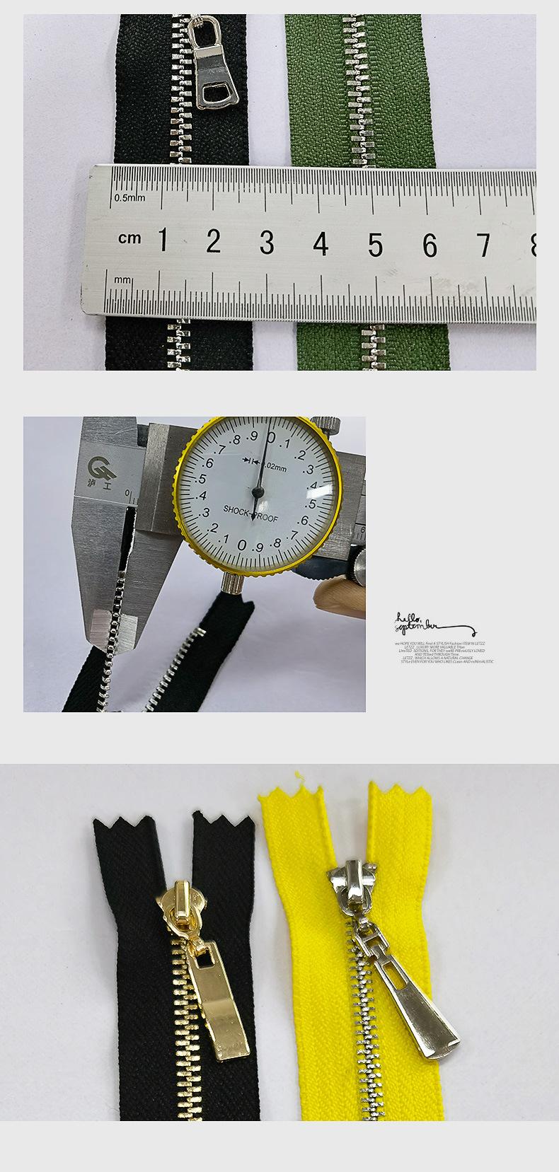 Cremallera Metálica Autoblocante 3#5# Dientes Y Cobre Blanco Bronce Oro Blanco Oro Claro Cola Cerrada Bolsillo de Ropa Chaqueta Cremallera Suave