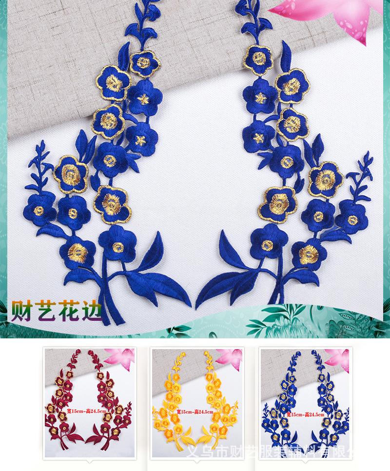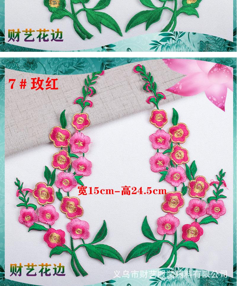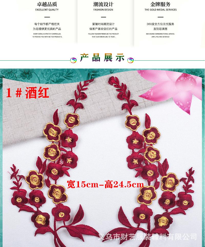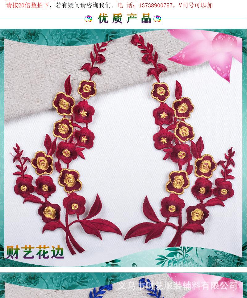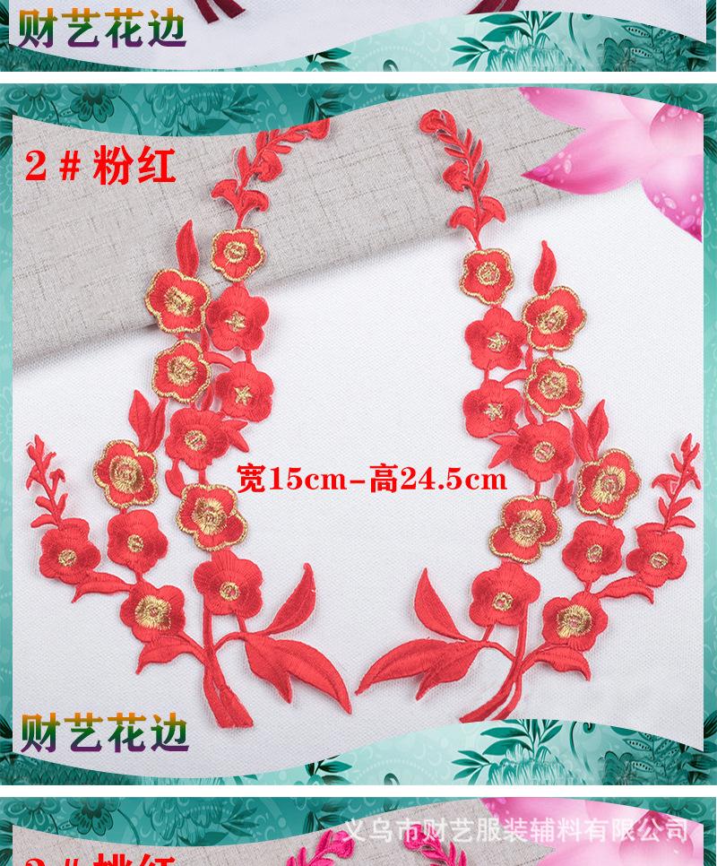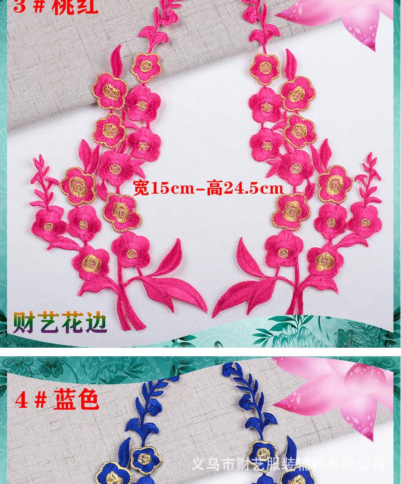 Yiwu encaje al por mayor bordado de flor de ciruelo subsidio actuación accesorios de vestuario de escenario aplique bordado étnico estampado en caliente