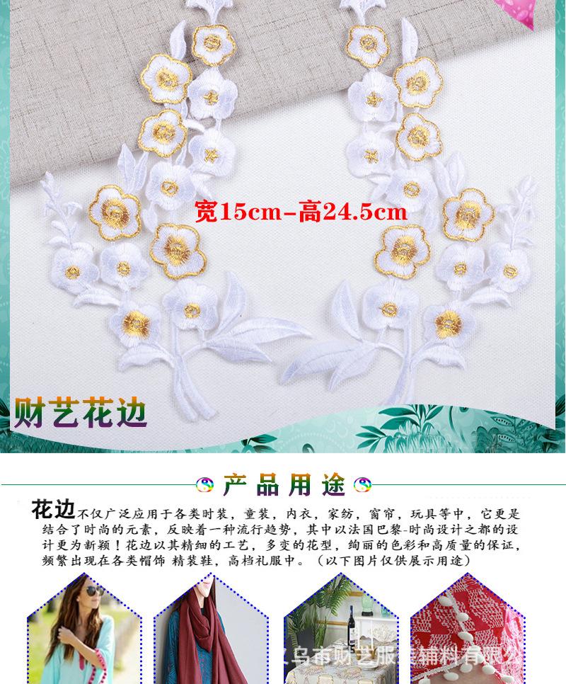 Yiwu encaje nuevo al por mayor bordado encaje para vestido de novia aplique parche para disfraz de escenario parche de tela bordado