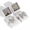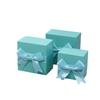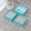 Joyero verde para anillos, colgantes, collares y pendientes, caja de embalaje con lazo de cinta plateada, caja de papel.