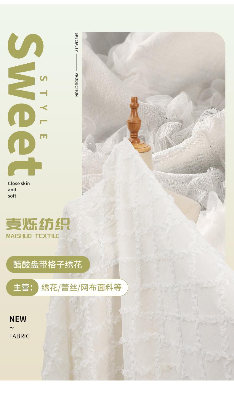 Nuevo acetato Tartán tela bordada vestido bordado tela mantel vestido decorativo tela de vestido de novia