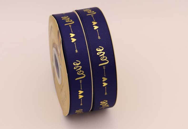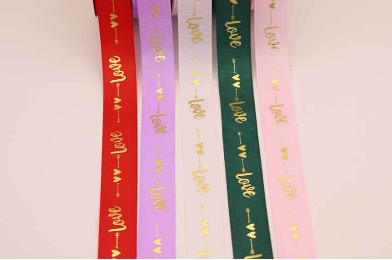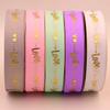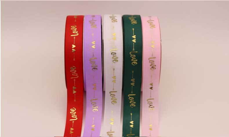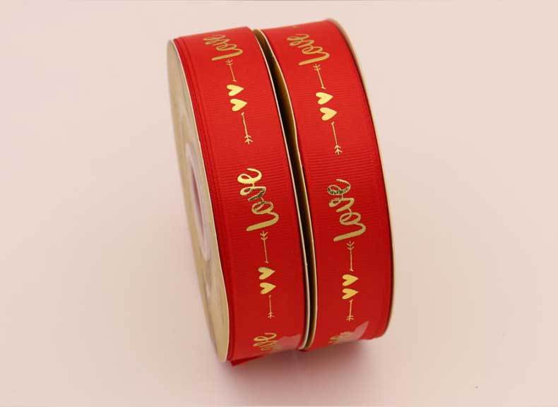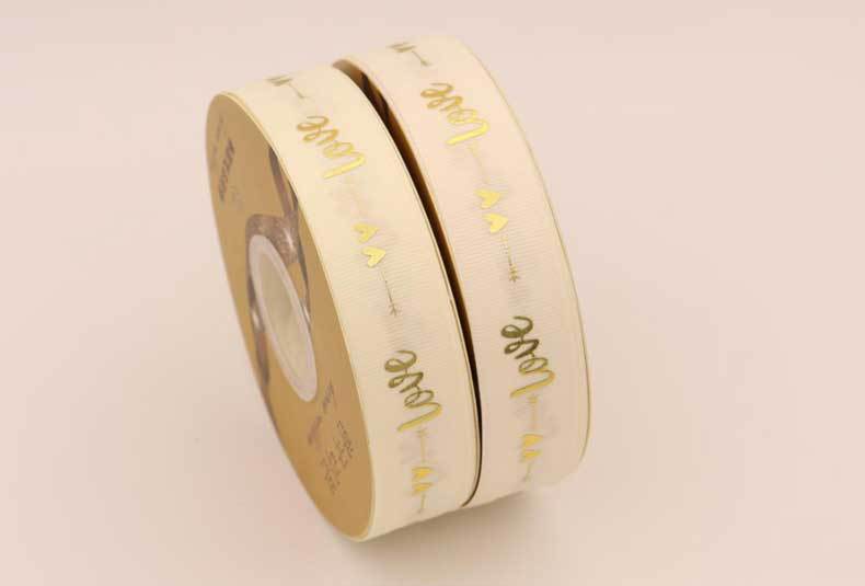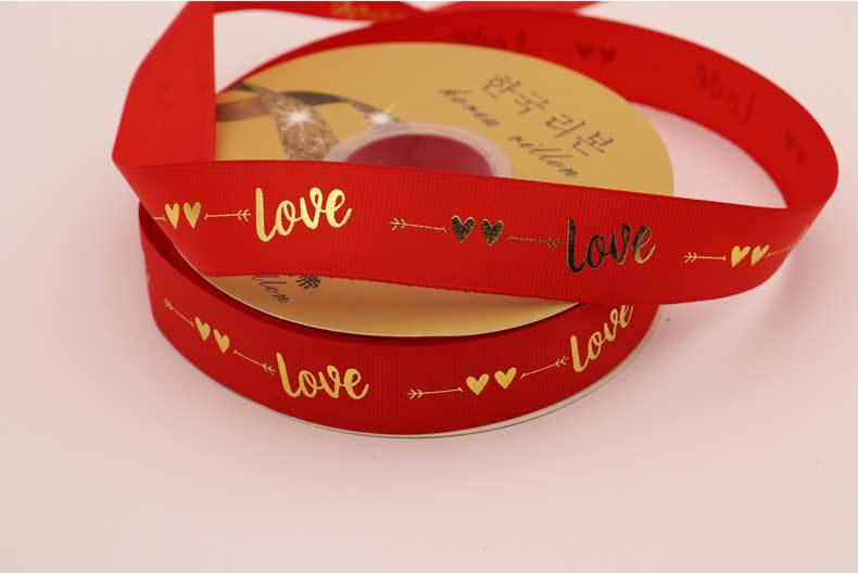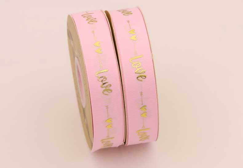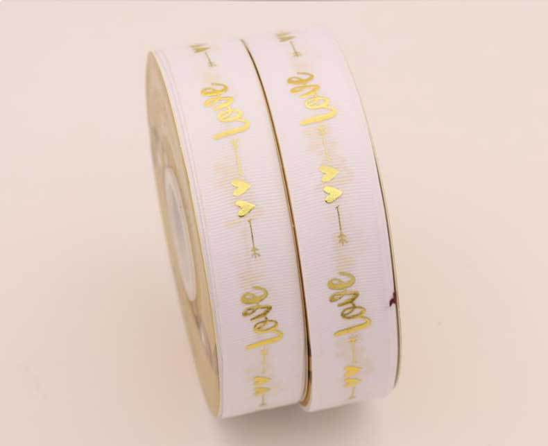 Cinta de 2.5cm con Estampado de Foil Dorado de Amor para Empaque de Regalo, Tela Festiva, Encaje para Regalo y Decoraciones Tejidas