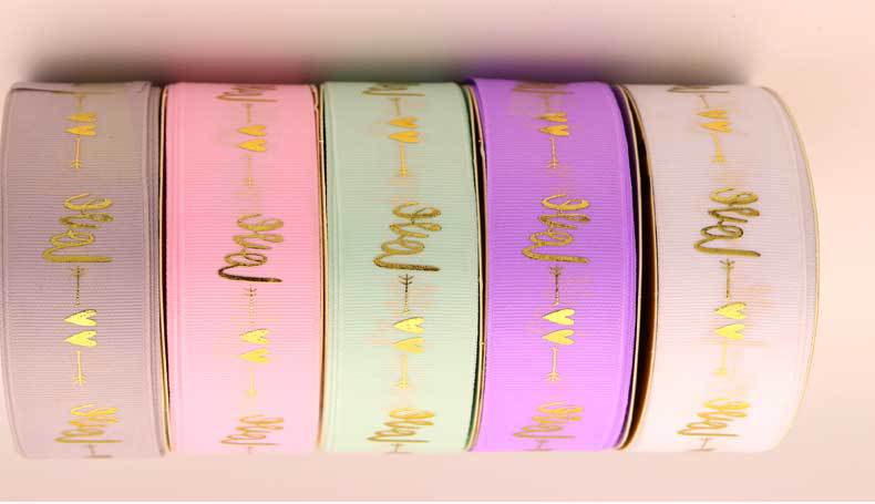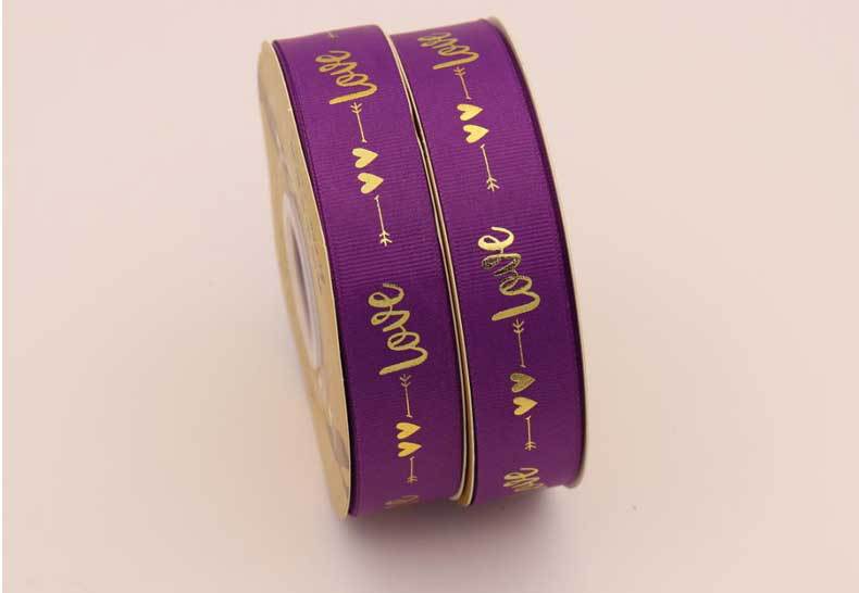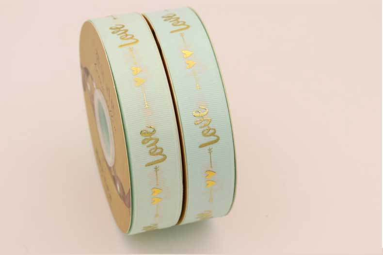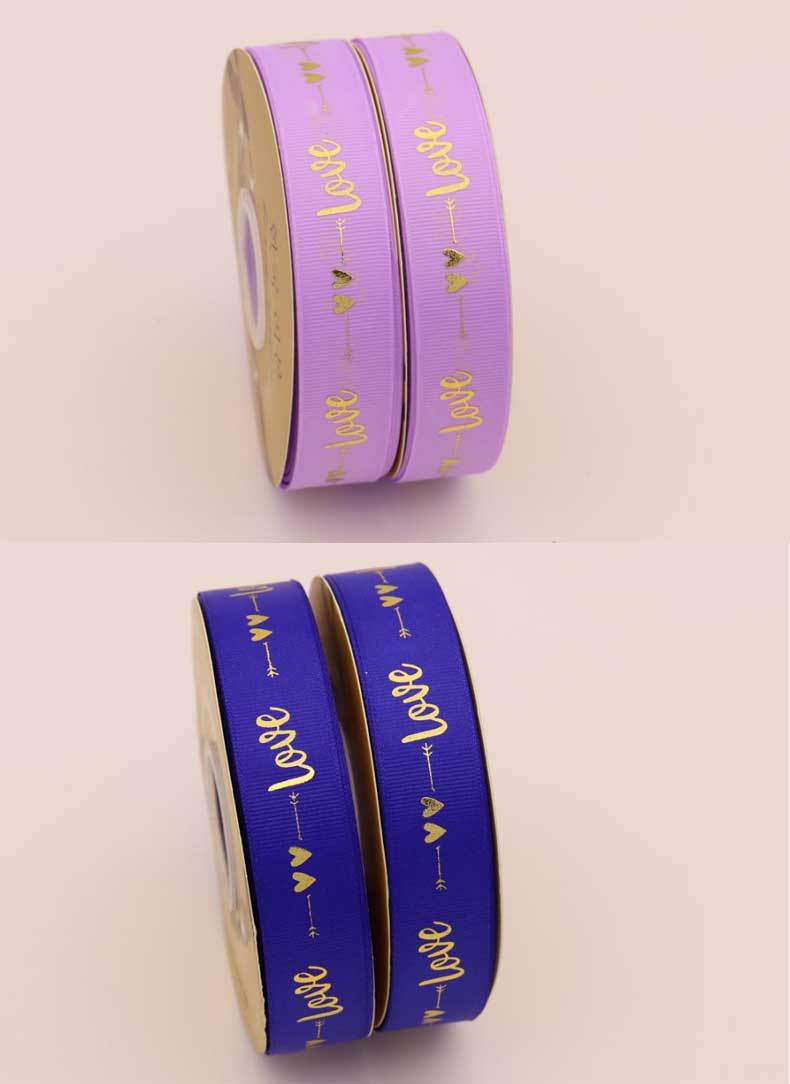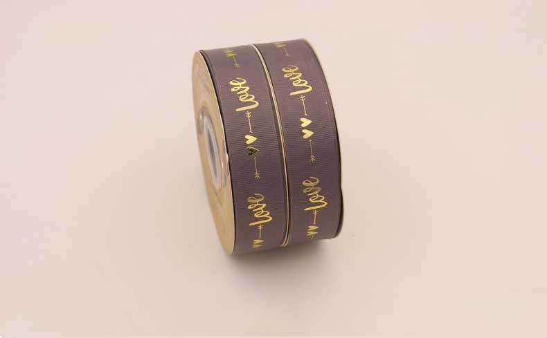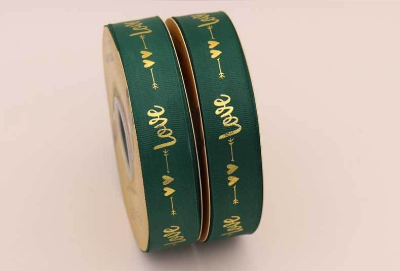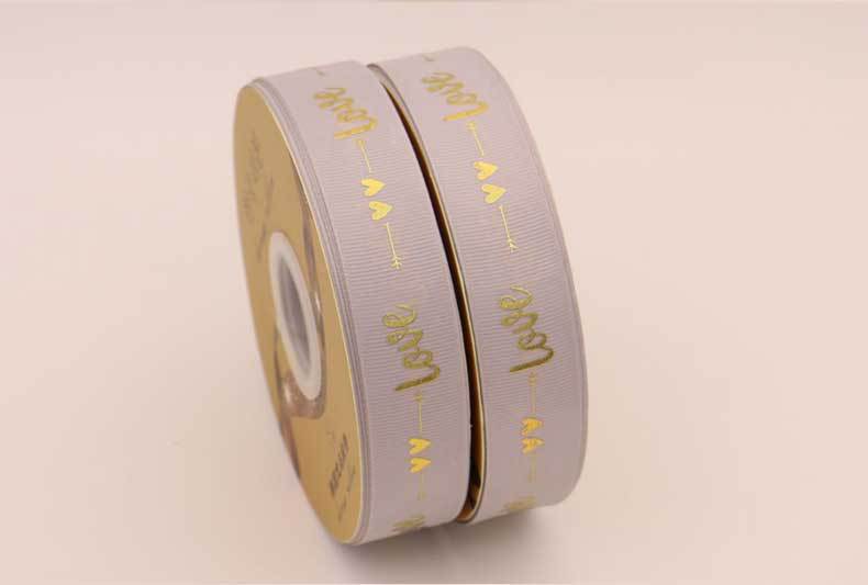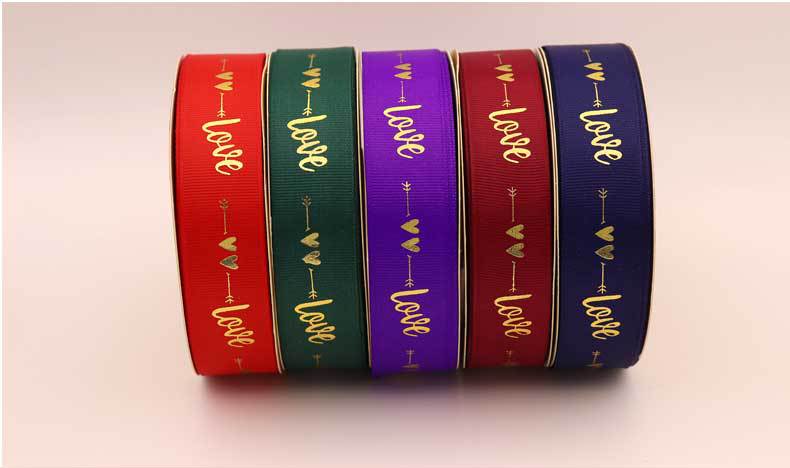 Cinta de 2.5cm con Estampado de Foil Dorado de Amor para Empaque de Regalo, Tela Festiva, Encaje para Regalo y Decoraciones Tejidas