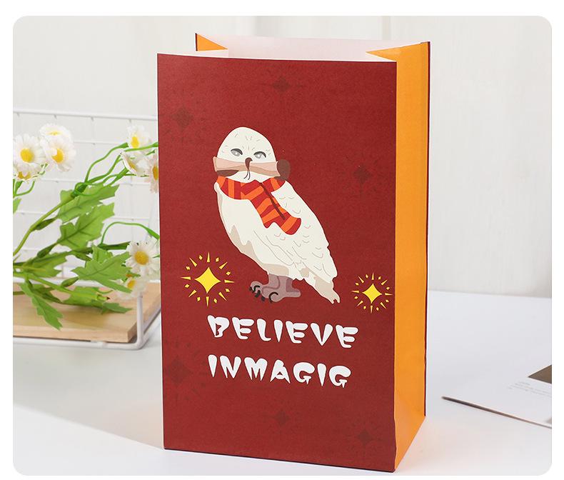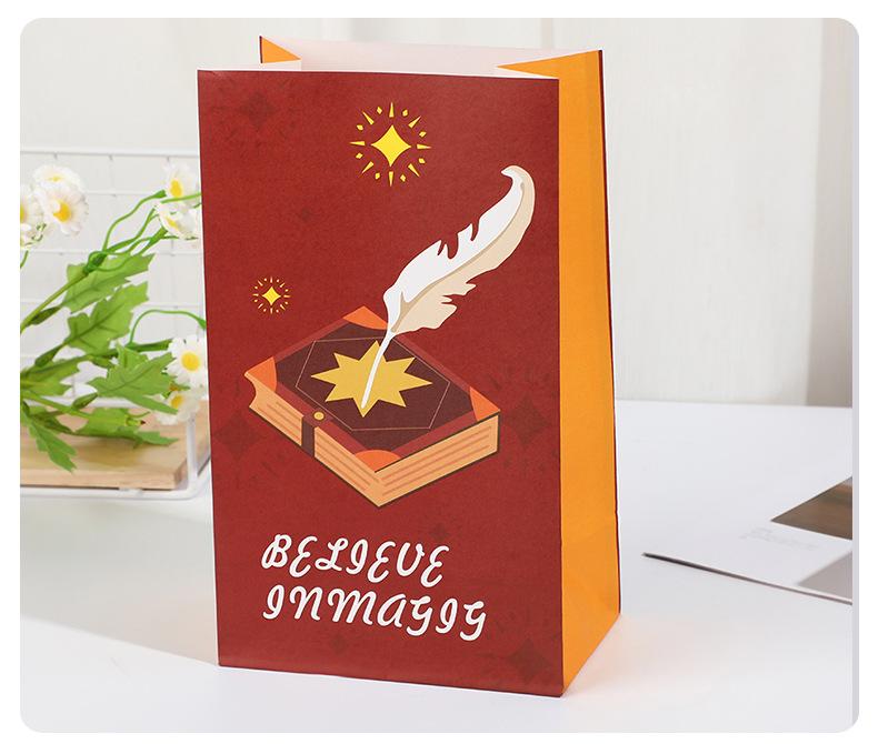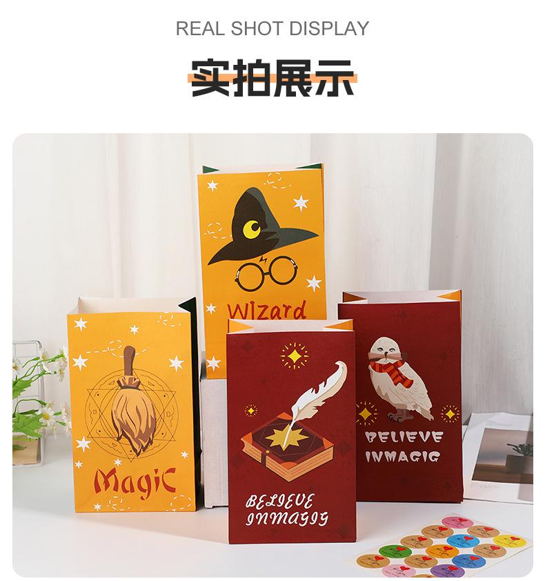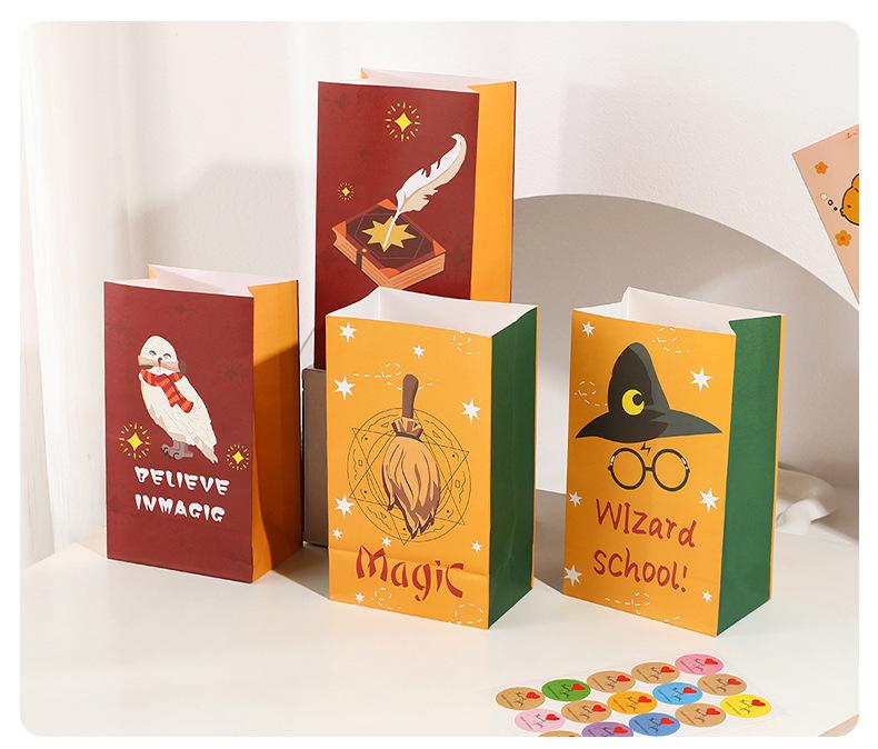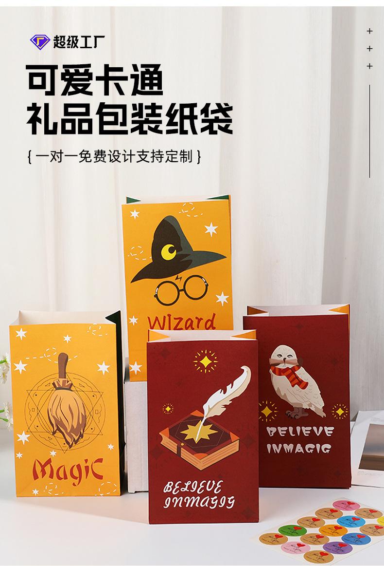 Bolsa de regalo de dulces de dibujos animados, bolsa de embalaje de boca plana con impresión creativa a color, bolsa de papel kraft para fiesta, bolsa con pegatinas.
