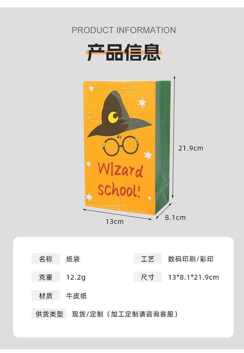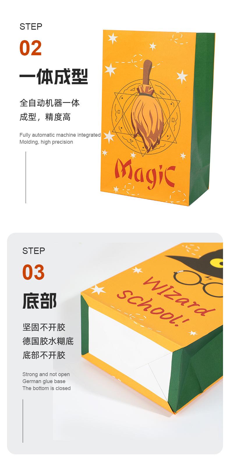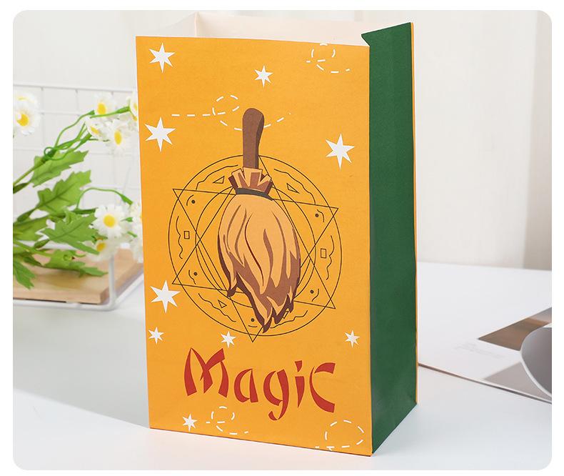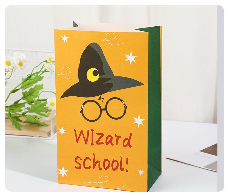 Bolsa de regalo de dulces de dibujos animados, bolsa de embalaje de boca plana con impresión creativa a color, bolsa de papel kraft para fiesta, bolsa con pegatinas.