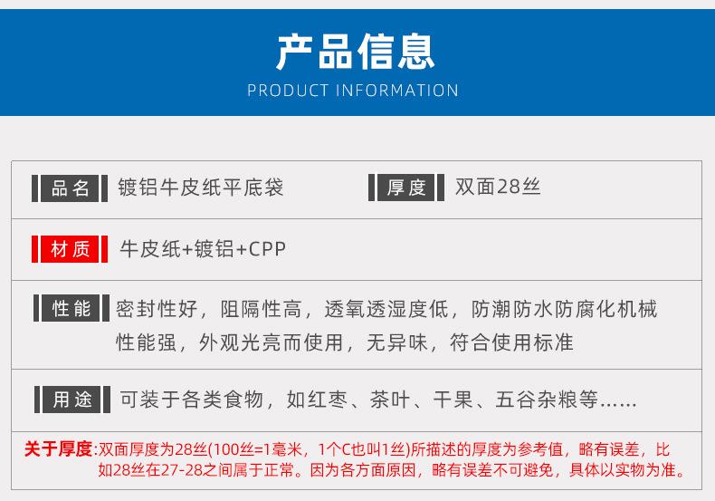 6*8 aluminized kraft paper flat bottom bag; kraft paper/aluminized CPP