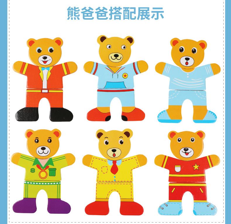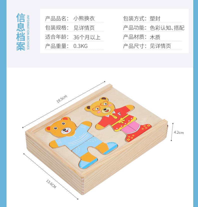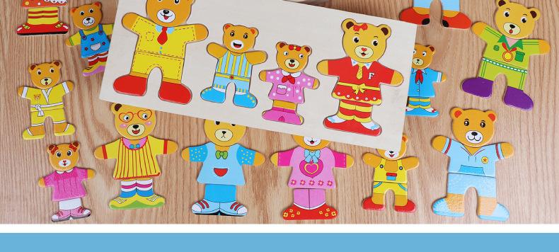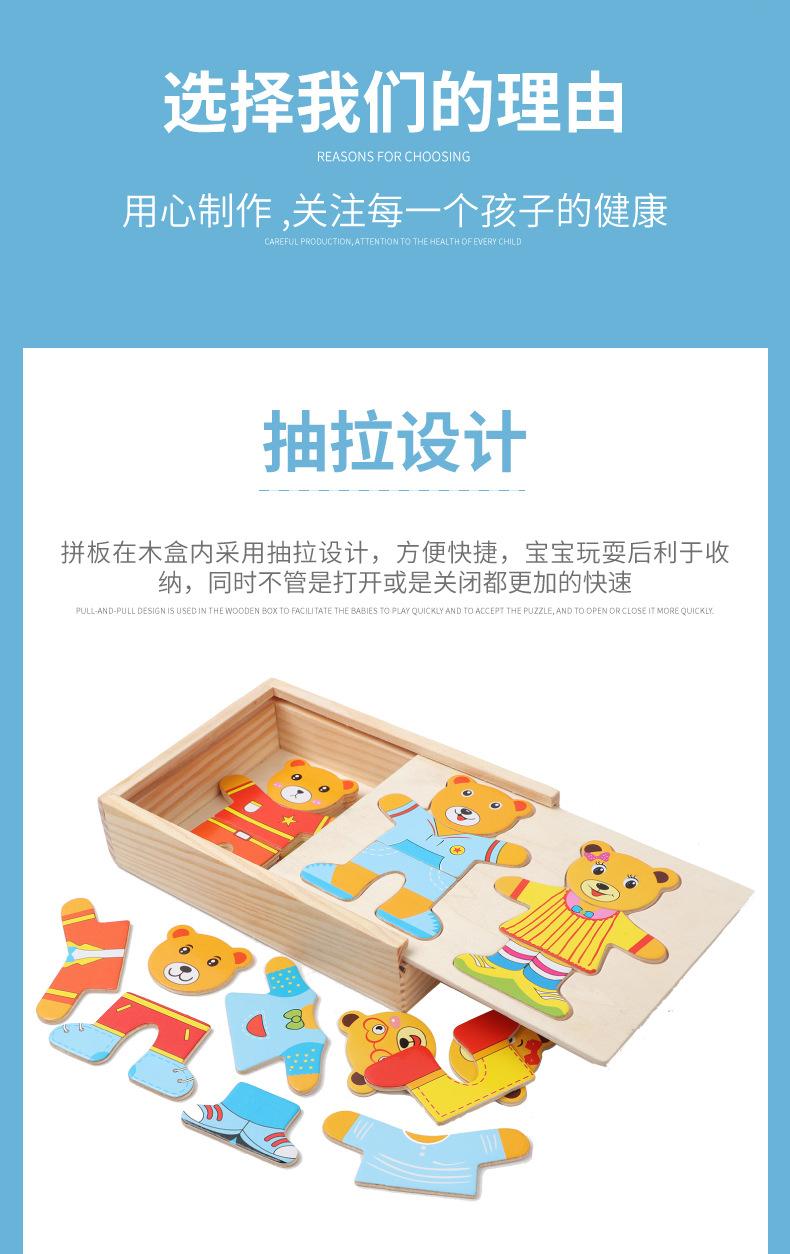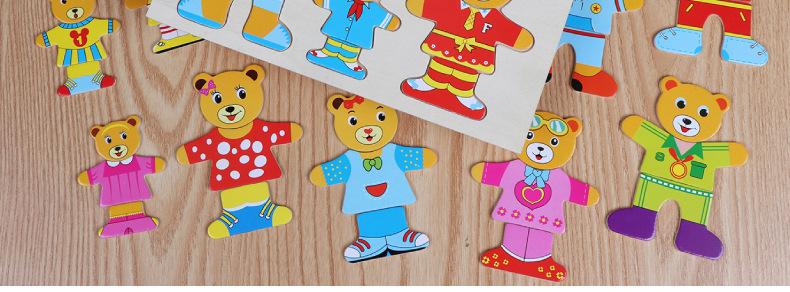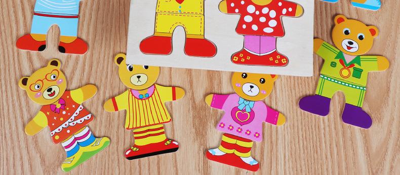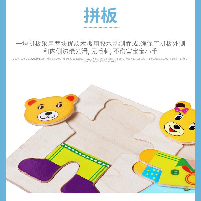 Juego de rompecabezas de madera para niños, juego de vestir, bloques de construcción de madera para bebés, directo de fábrica