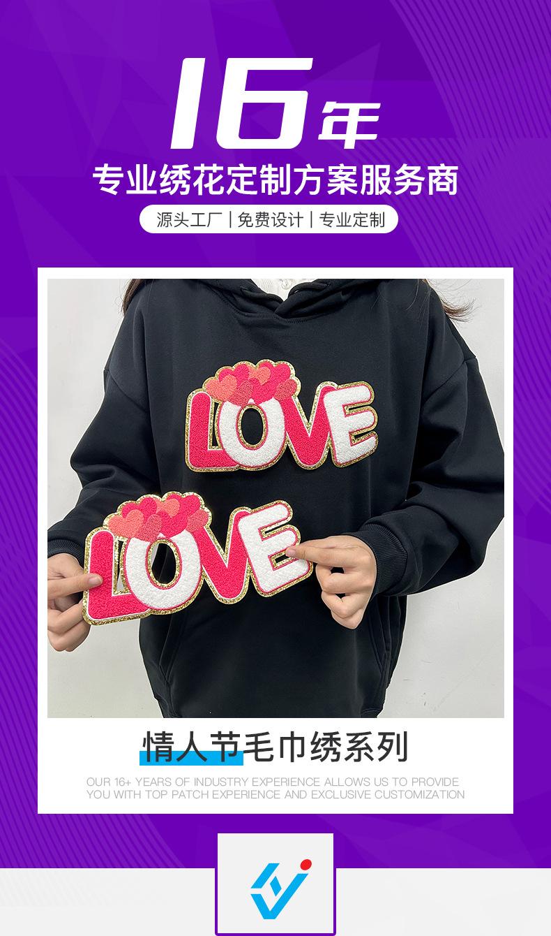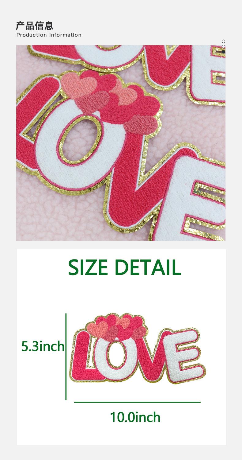 Fábrica de Bordado de Dongguan Bordado de Letras Inglesas Amor Toalla Grande Parche de Tela Bordado Parche Bordado Parche de Tela Parche de Tela