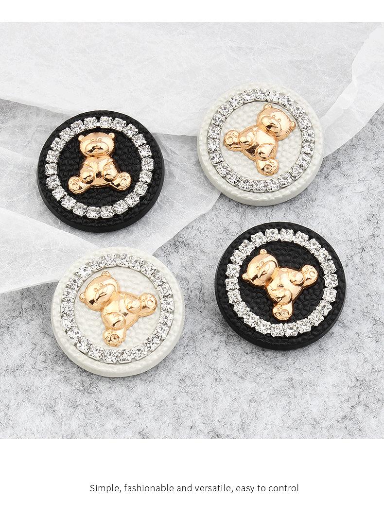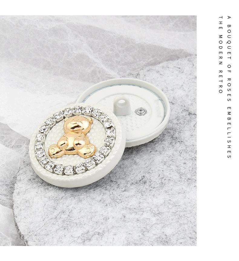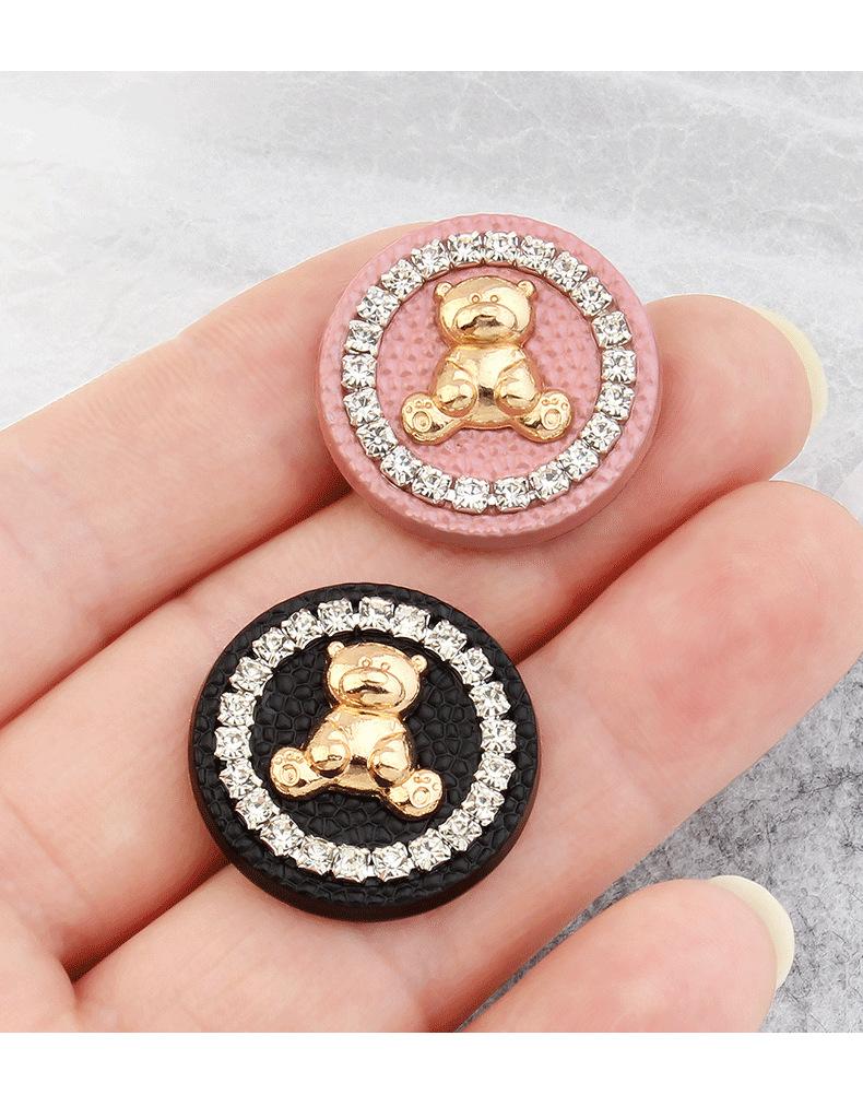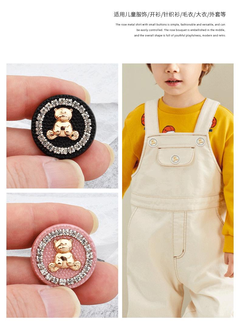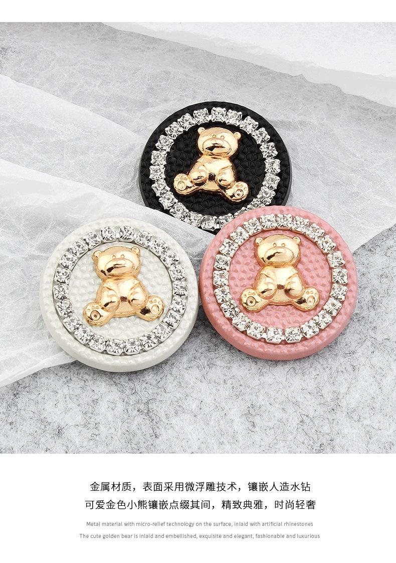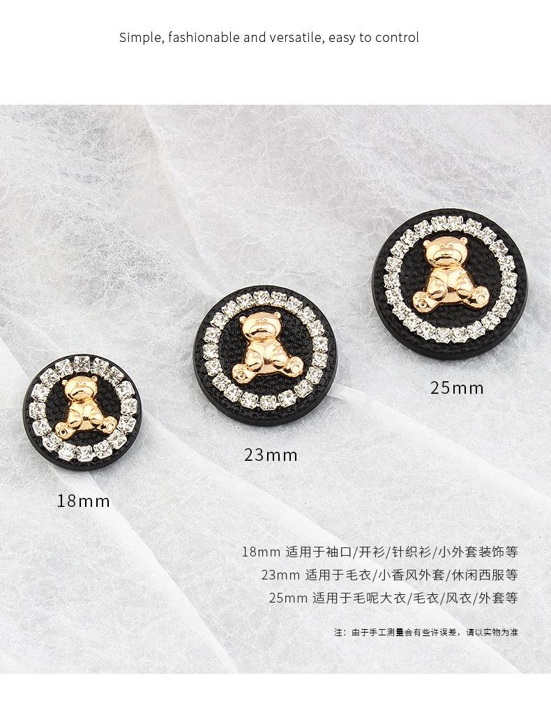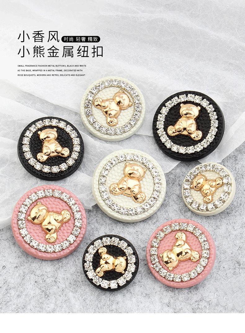 Abrigo Cárdigan Suéter con Botones Metálicos Estilo Chanel de Alta Gama Ropa Decorativa con Pedrería de Oso de Dibujos Animados Botón Grande